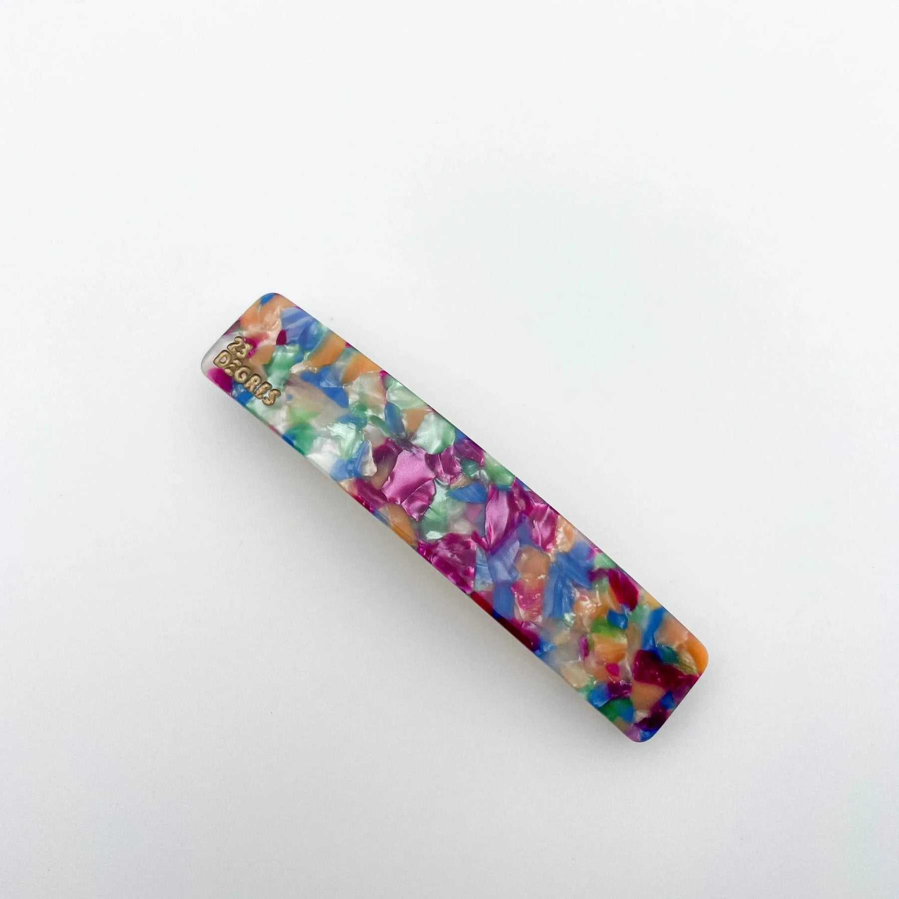 Een vrolijke explosie van kleur! De Sun16 haarspeld van 23 Degrés combineert fuchsia, perzik, turquoise en parelmoer in een speels, zomers design. Dankzij de stevige Clic-Clac-sluiting blijft je haar stijlvol op z’n plek – of je nu danst, werkt of relaxt.