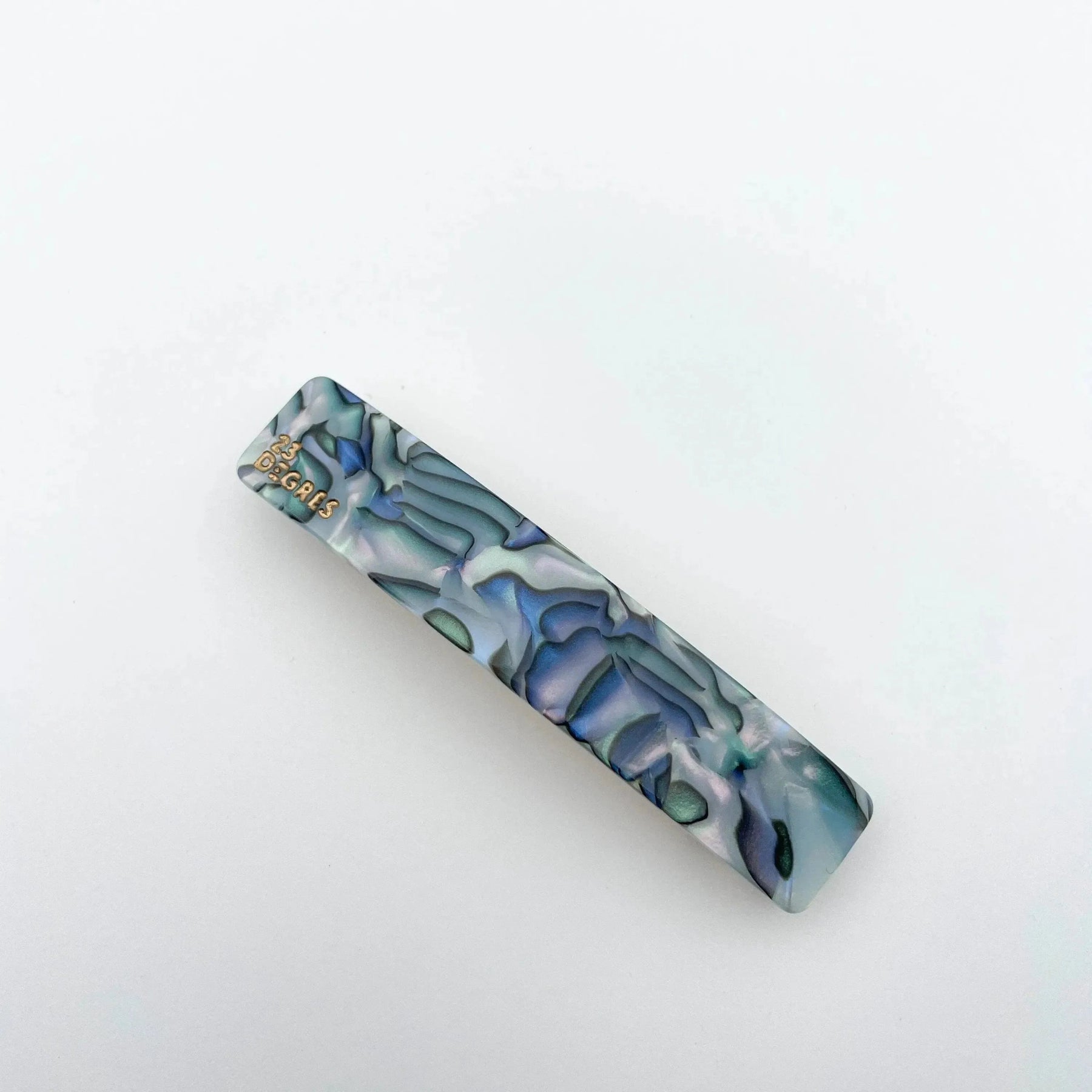 Laat je betoveren door de oceaanachtige schoonheid van de Sun3 haarspeld. Een elegante mix van parelmoer, zilvergrijs en schelpachtig blauwgroen maakt deze speld tot een subtiele eyecatcher. Gemaakt van glanzend celluloseacetaat en met liefde met de hand vervaardigd in Frankrijk. 🌊