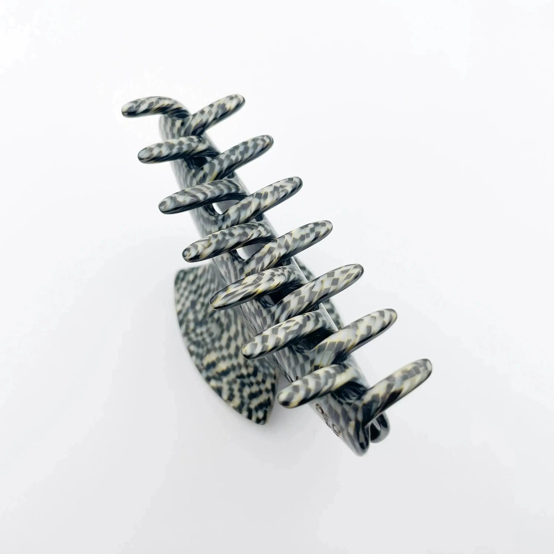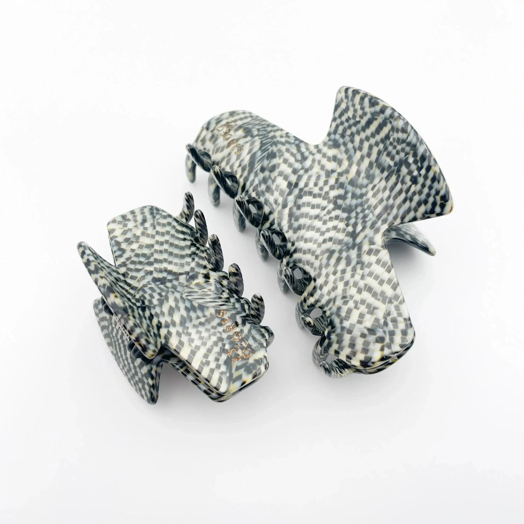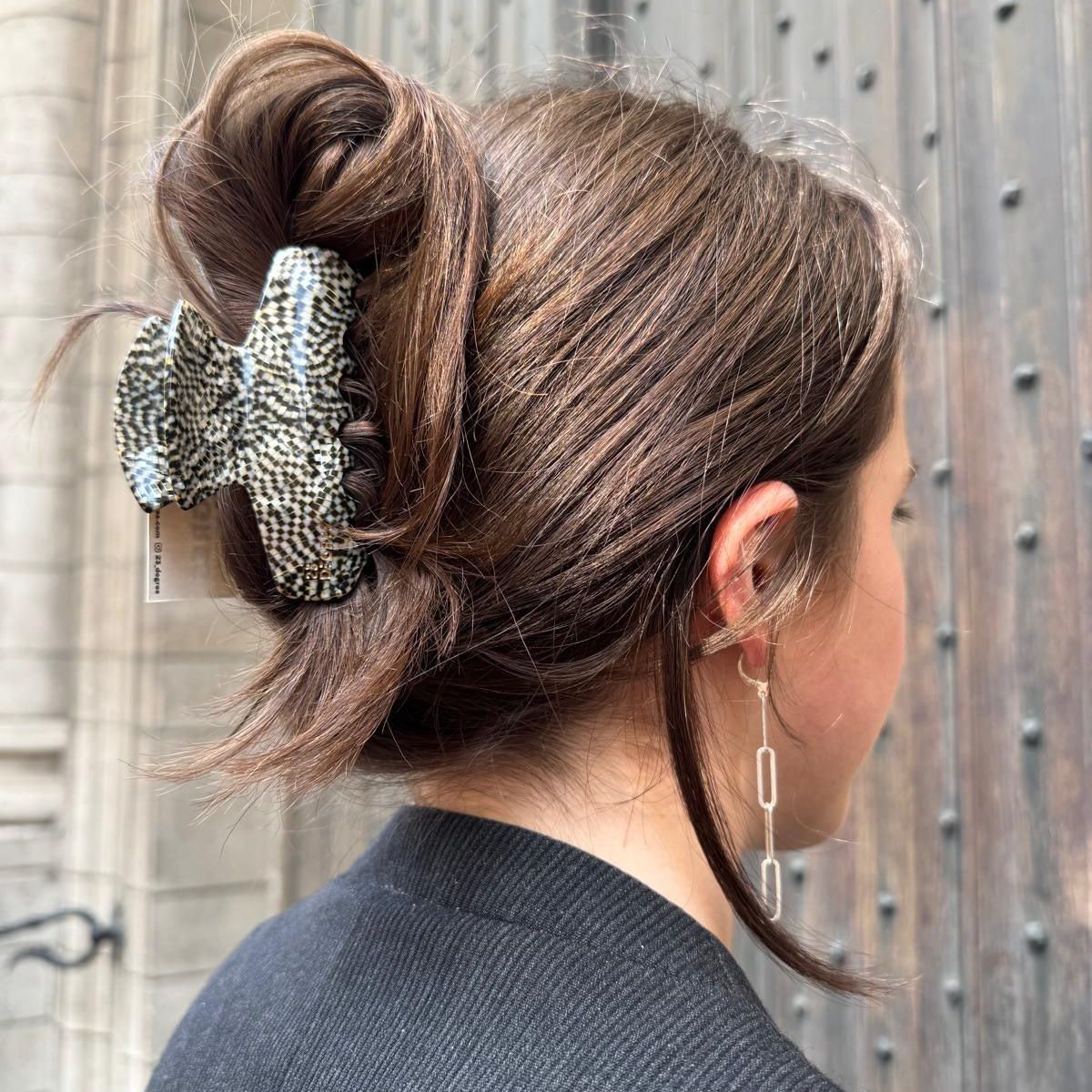 Strak, grafisch en toch speels – de Big Rectangle haarclip in Dam is een subtiele blikvanger. 🖤🤍 Met een zwart-wit dambordpatroon en een stevige grip is deze clip ideaal voor dik of lang haar. Net als al onze favorieten van 23 Degrés is ook dit exemplaar handgemaakt in de Jura 🇫🇷 van duurzaam, plantaardig acetaat.