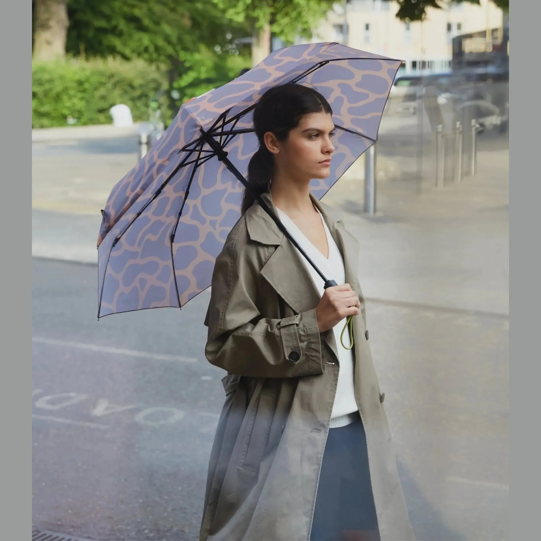Deze paraplu combineert design met duurzaamheid. De canopy is gemaakt van gerecycleerde PET-flessen (9 stuks per paraplu) en afgewerkt met een waterdichte, PFC-vrije coating. Dankzij het stevige stalen frame, windbestendige mechanisme en automatische open-/sluitsysteem is hij een betrouwbare metgezel in elk weertype.