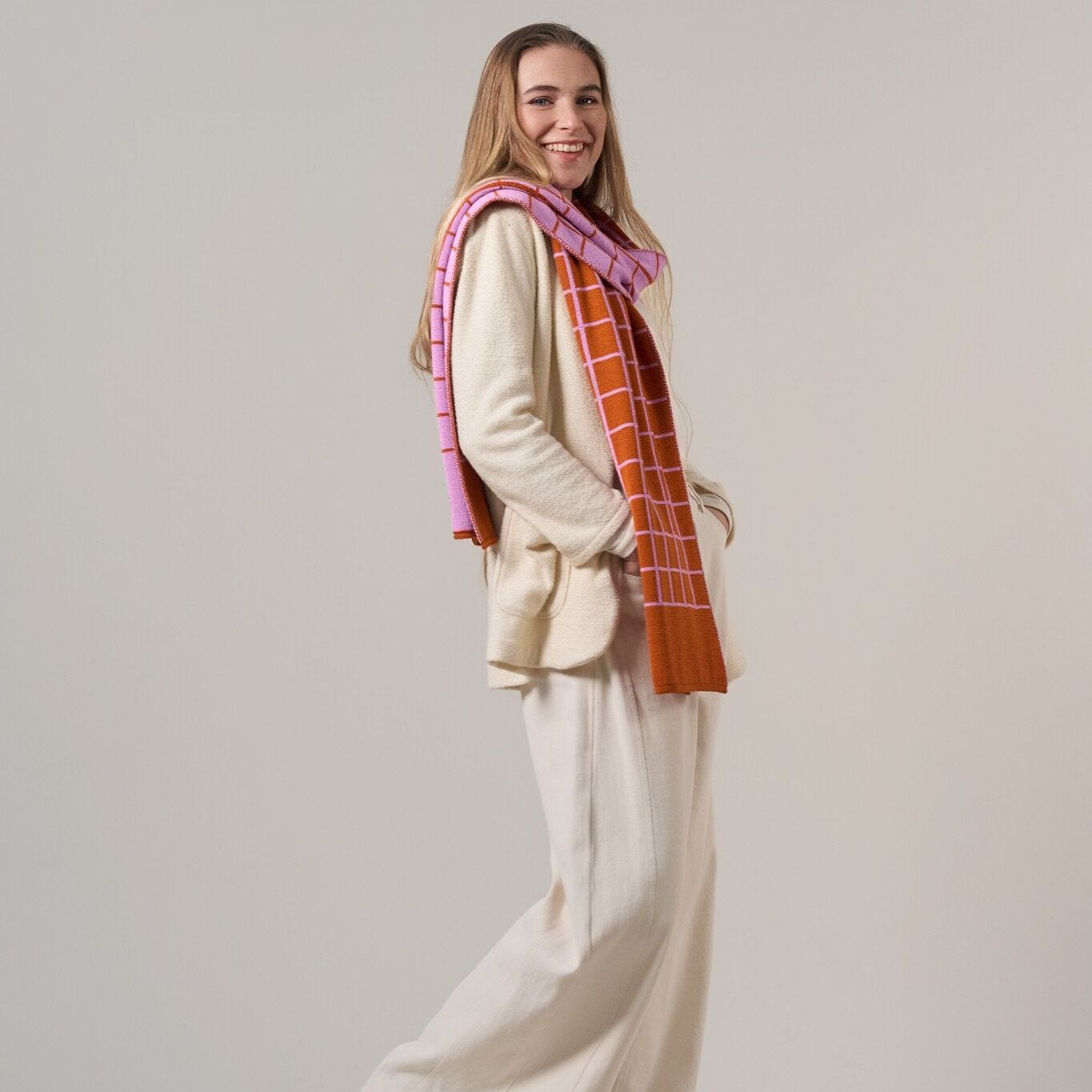 Elke sjaal in deze collectie weerspiegelt haar ziel en is met zorg en passie geweven. Ze zijn gemaakt in België met de beste Italiaanse garens en combineren zachtheid, duurzaamheid en tijdloze elegantie.