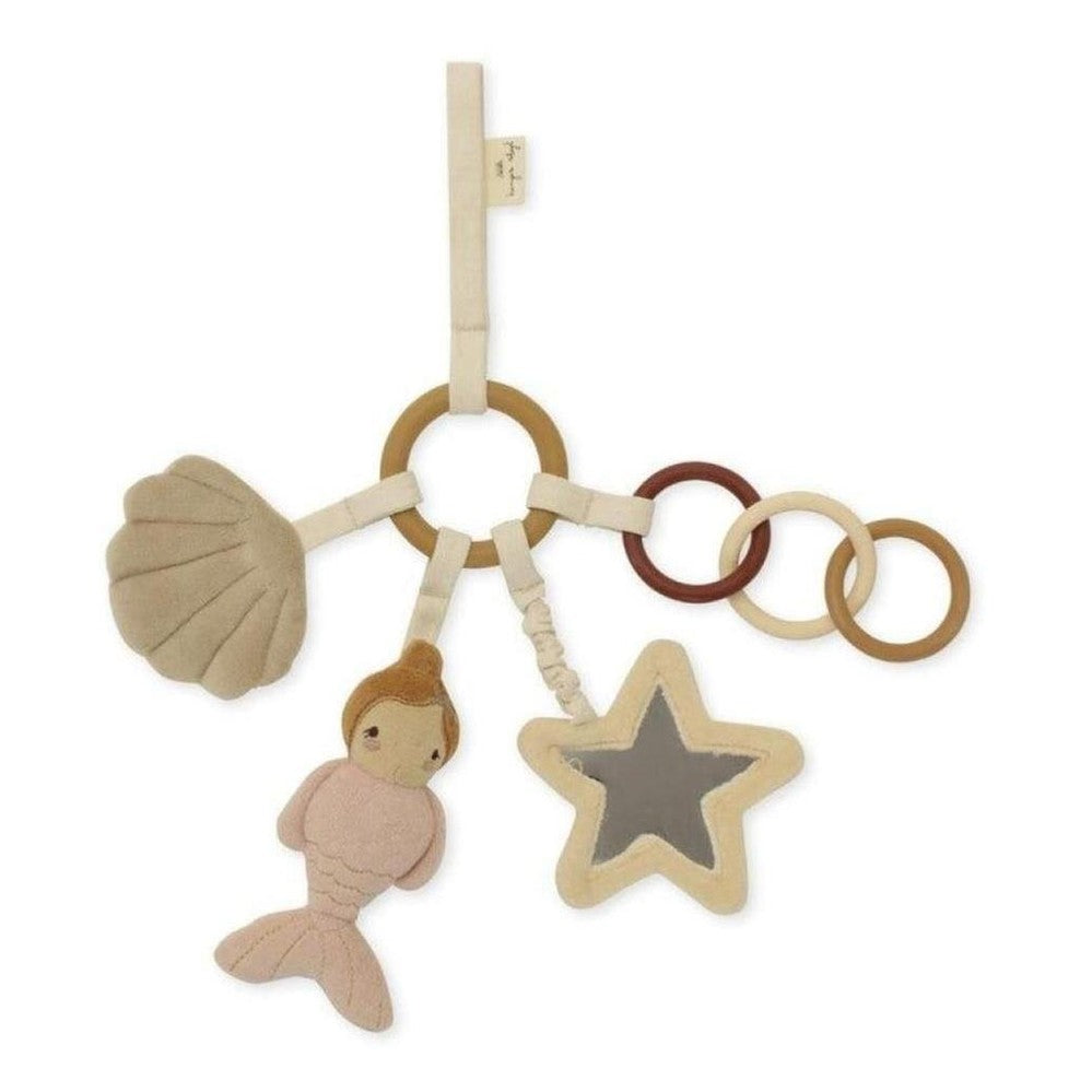Aan deze geweldige speelring valt veel te ontdekken! De verschillende onderdelen en texturen stimuleren de motoriek van je baby, terwijl de bijtring zelf gebruikt kan worden om gevoelig tandvlees te kalmeren. Verder is er een handige velcrosluiting waarmee de ring kan vastgemaakt worden aan de buggy of maxicosi.