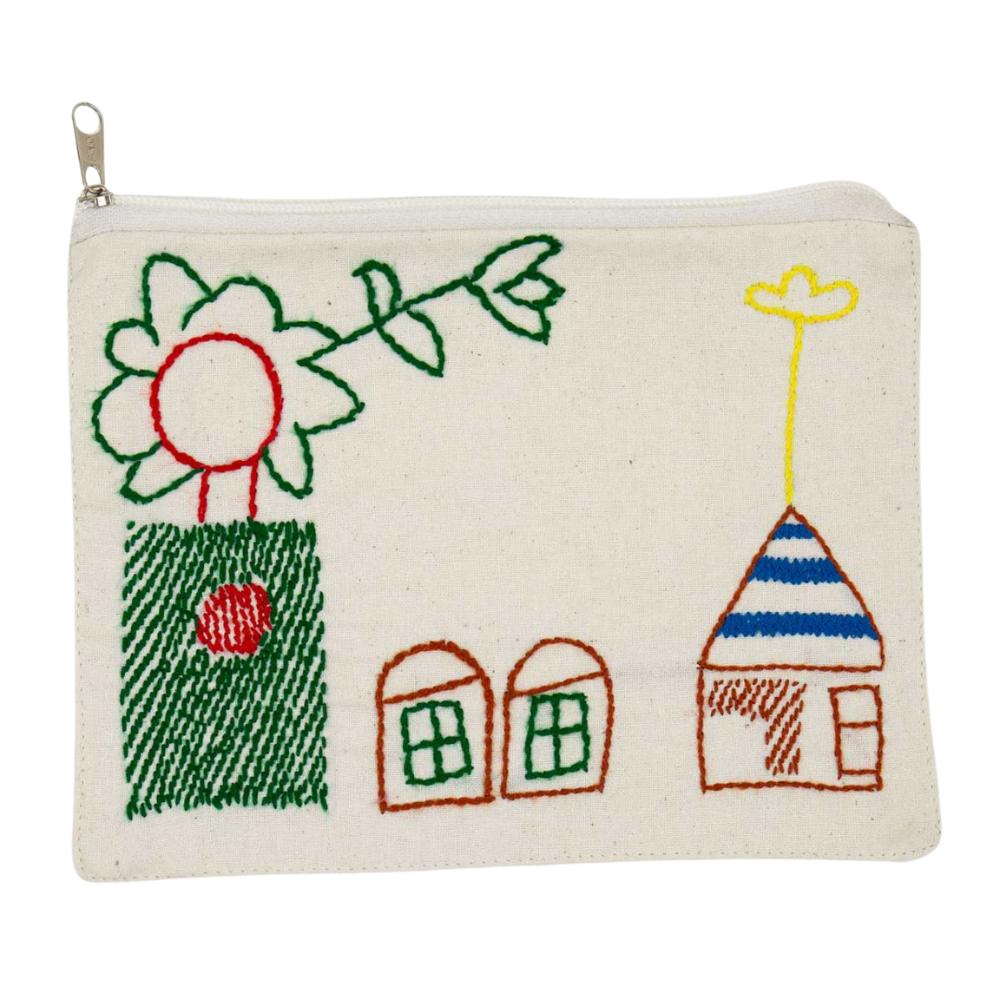 Een tasje van ongebleekt katoen met fijn handgeborduurd borduurwerk op de voorkant. Het handgeborduurde textiel wordt gemaakt in de Khulna-regio in Bangladesh. De ambachtslieden maken deel uit van een Fair Trade organisatie, die belangrijke banen creëert op het platteland.