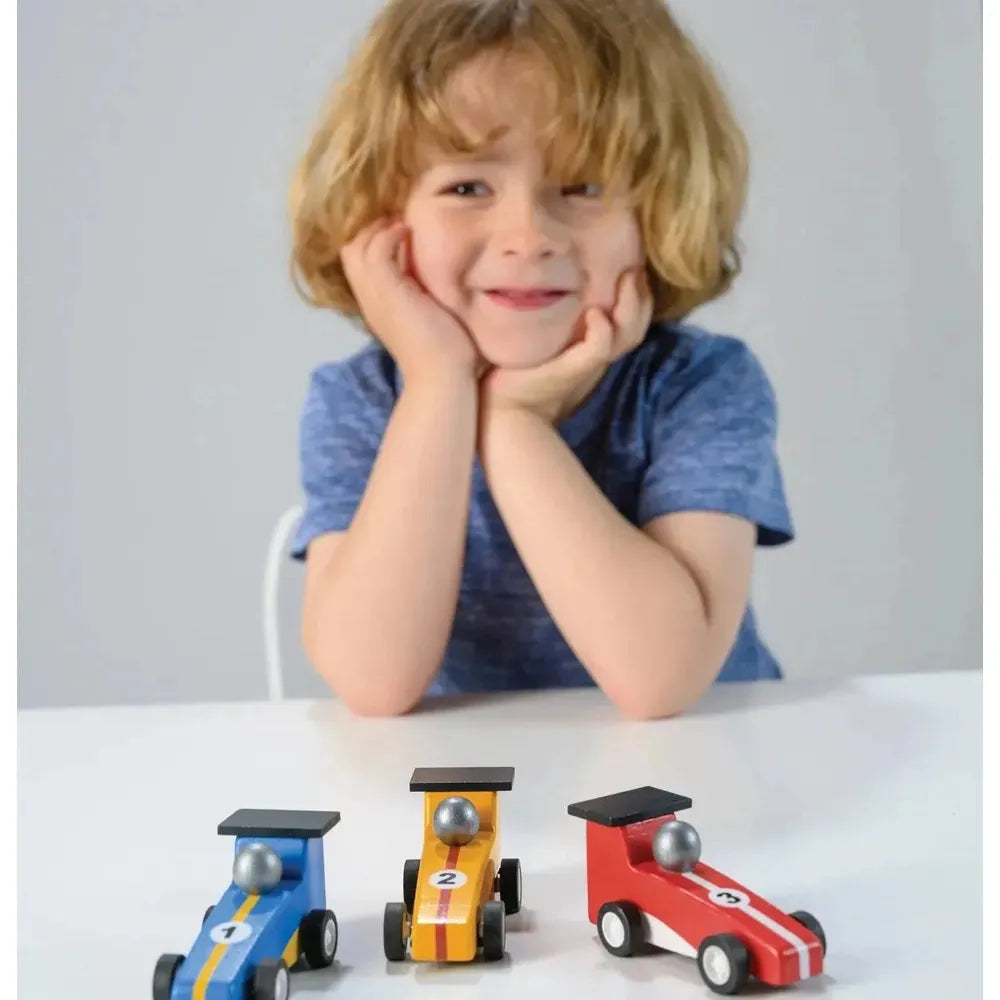 Deze set bevat 3 verschillende gekleurde raceauto's, elk met een terugtrekmechanisme waardoor ze perfect zijn om mee te racen.