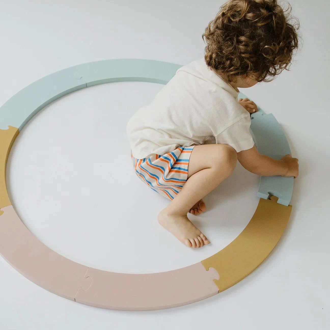 Imagipath van Moes is een veelzijdige speelset bestaande uit 8 onderdelen die op verschillende manieren kunnen worden samengevoegd tot een parcours. Kinderen kunnen een looproute creëren om overheen te lopen of het parcours gebruiken als een racebaan voor auto's en ander speelgoed. De set biedt de vrijheid om cirkelvormige, slingerende of fantasierijke opstellingen te maken. Ideaal voor de allerkleinsten om vertrouwd te raken met parcoursen en 'de vloer is lava' spel, dankzij de optimale hoogte van de stukken."