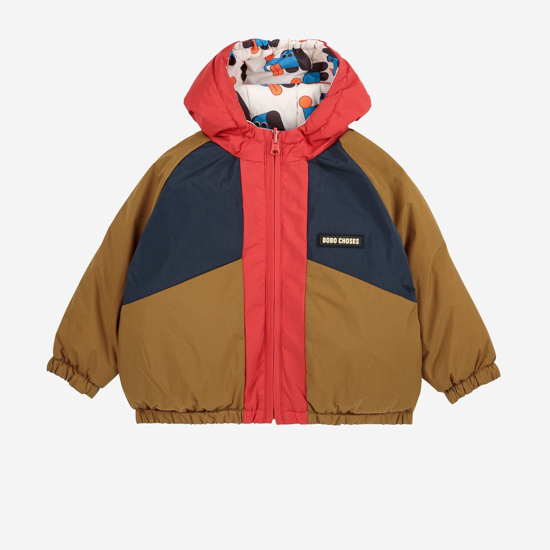 Dikke pufferjas van Bobo Choses. Deze schattige jas met hondjes kan je langs beide kanten dragen.