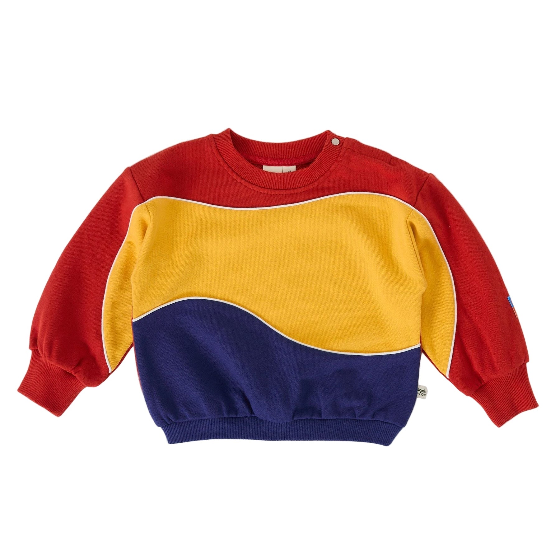 Dit is een kleurrijke sweater van Goldie + Ace, gemaakt van katoen. Vervolledig de comfy outfit met de bijhorende Rudy Piped Panel Sweatpants! Van deze trui bestaat zowel een kinder- als een babymodel. Het babymodel heeft drukknoppen in de hals voor het gemakkelijk aan- en uittrekken van de trui.
