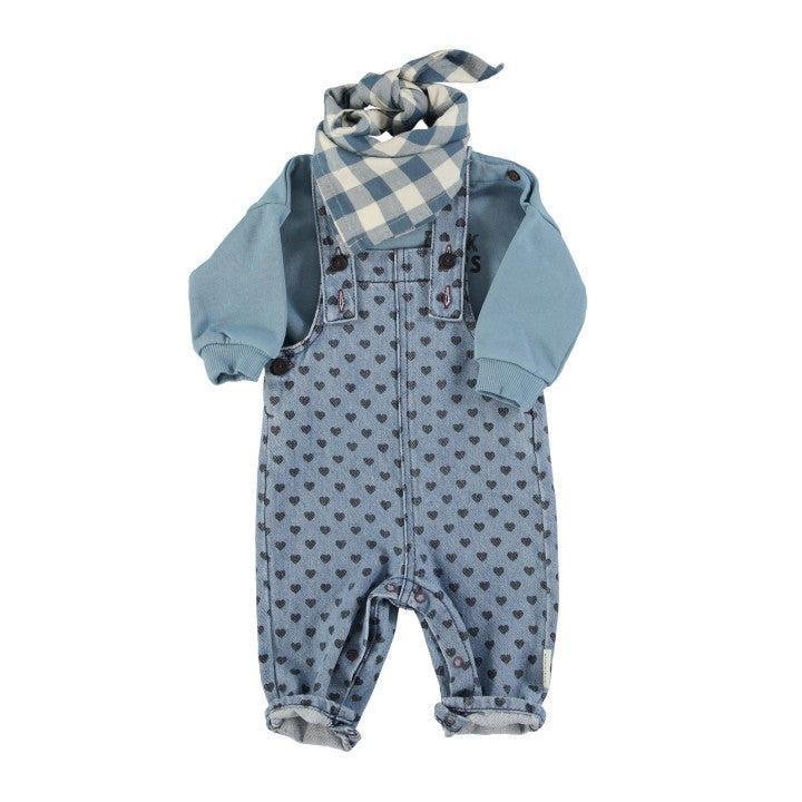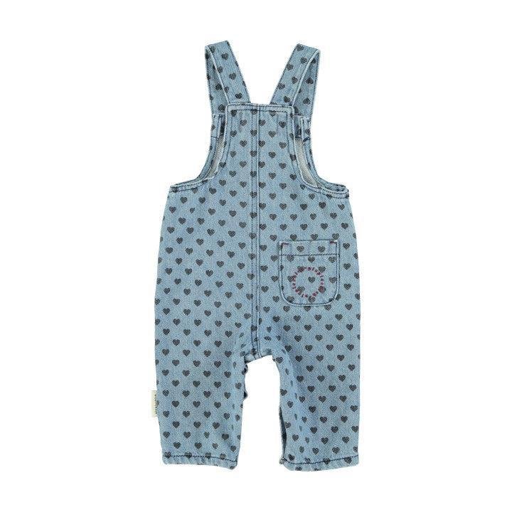 Een tuinbroek met verstelbare bandjes. Gedetailleerd met bordeaux logo geborduurd in achterzak. Babymaten hebben drukknopen tussen de benen.