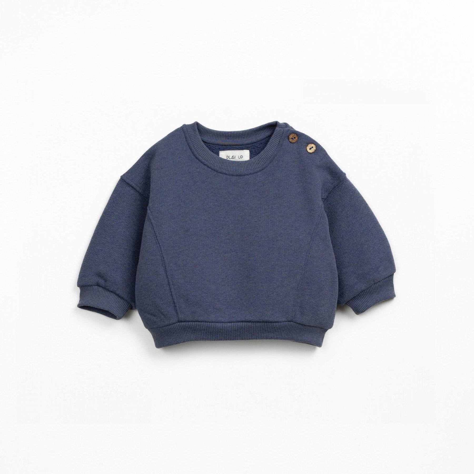 Deze mooie, blauwe sweater van Play Up houdt je kindje lekker warm. De sweater heeft knoopjes aan de hals om het aan- en uittrekken te vergemakkelijken.