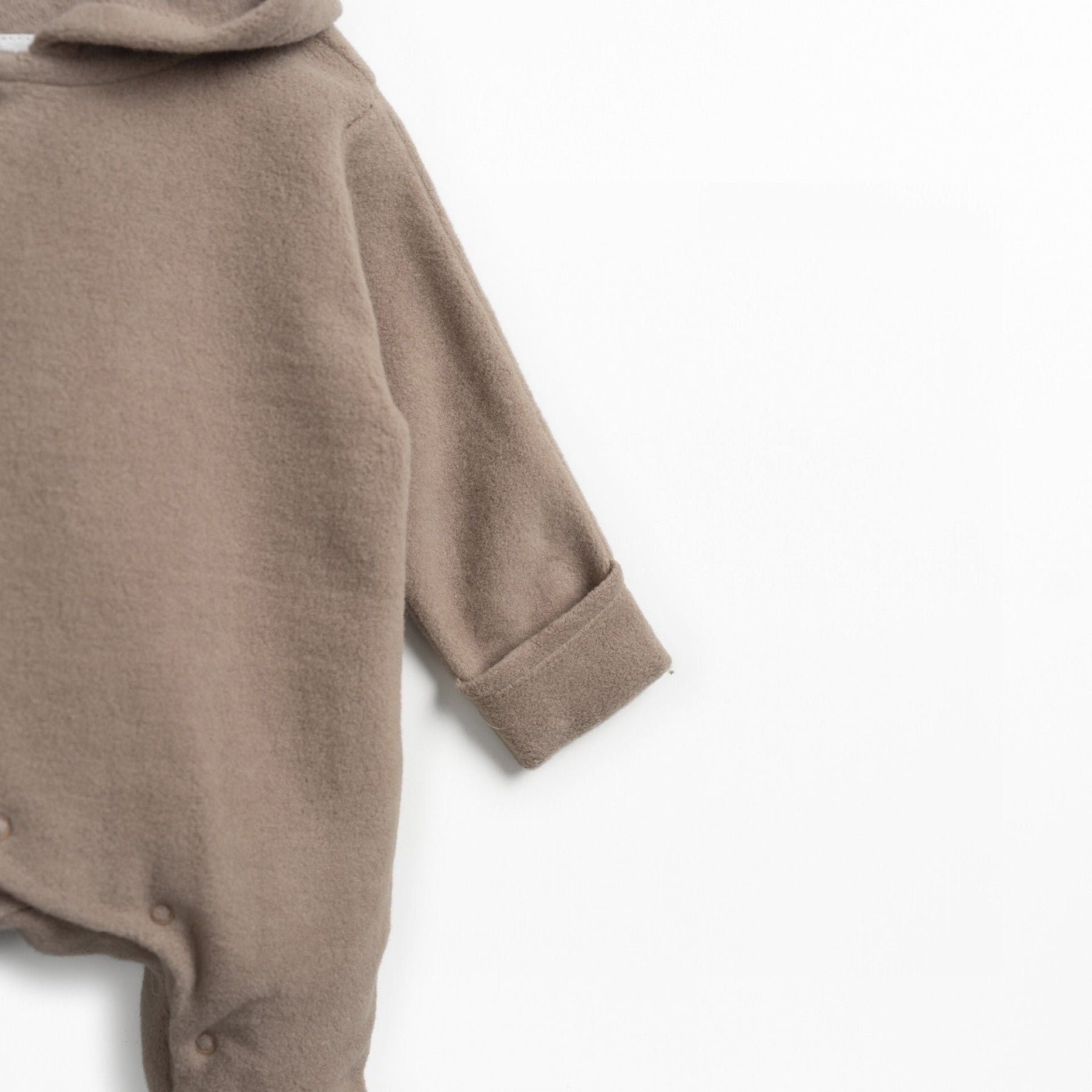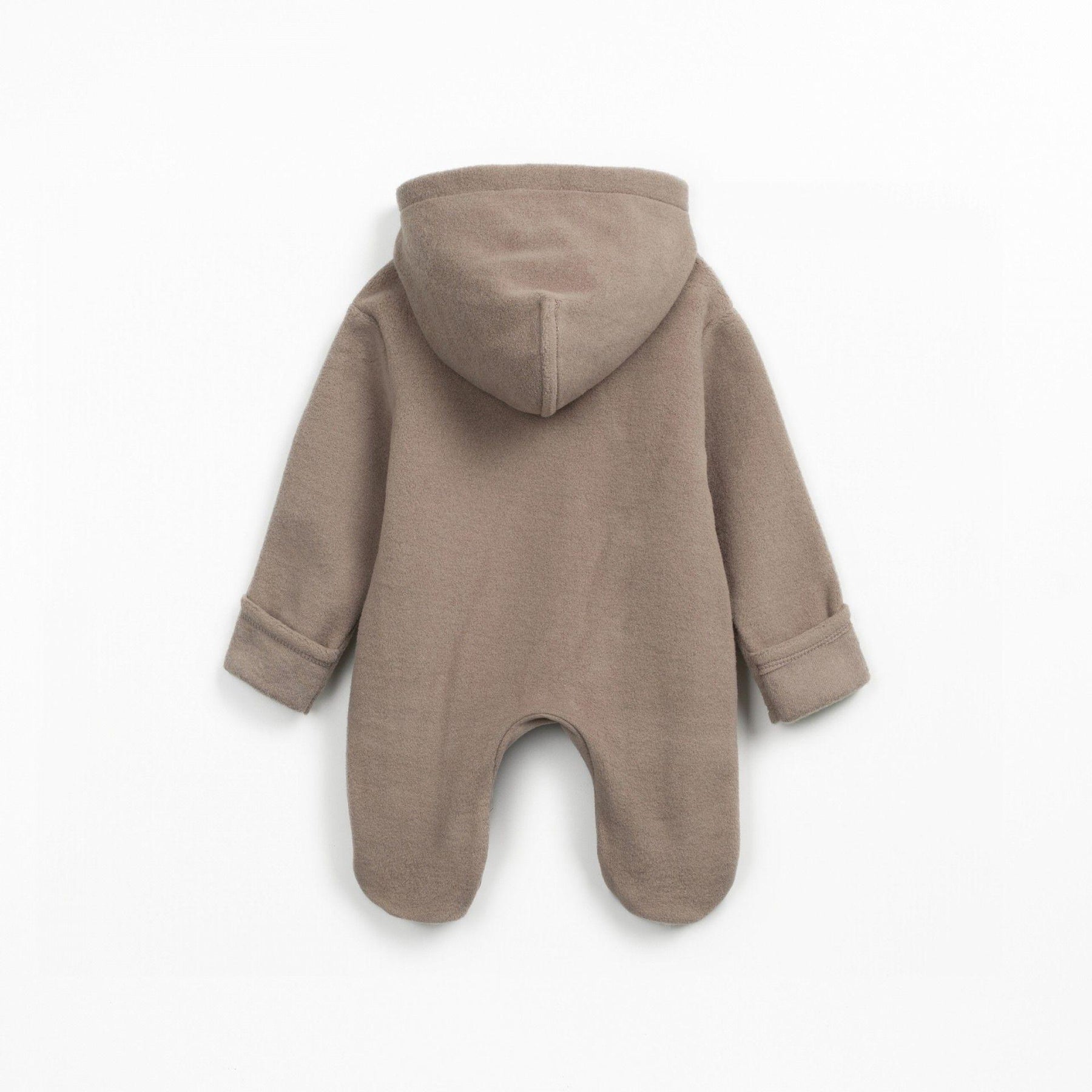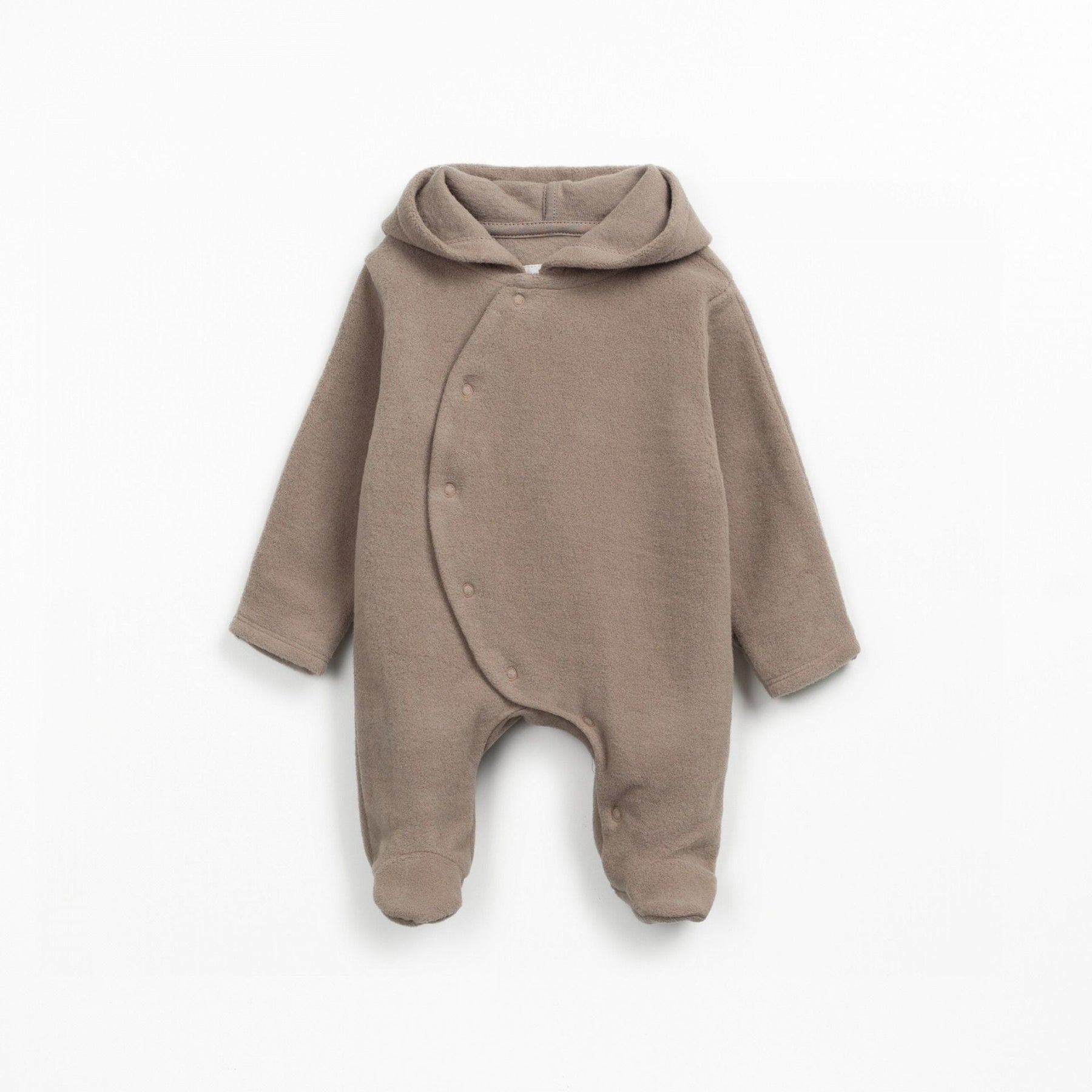 Deze Polar Jumpsuit van Play Up in een bruine kleur is een uiterst zachte jumpsuit gemaakt van 100% organisch katoen. De jumpsuit heeft een kap en voetjes én de optie tot wantjes, om je kleintje lekker warm te houden. De jumpsuit kan gemakkelijk aan- en uitgetrokken worden door de drukknoopjes die van aan de hals tot aan de voet lopen.