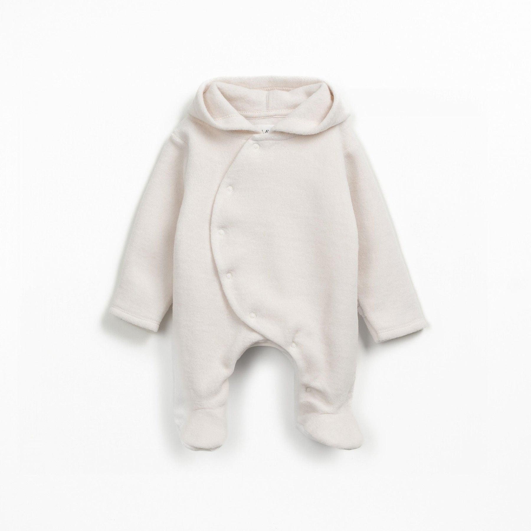 Deze Polar Jumpsuit van Play Up in een beige kleur is een uiterst zachte jumpsuit gemaakt van 100% organisch katoen. De jumpsuit heeft een kap en voetjes én de optie tot wantjes, om je kleintje lekker warm te houden. De jumpsuit kan gemakkelijk aan- en uitgetrokken worden door de drukknoopjes die van aan de hals tot aan de voet lopen.