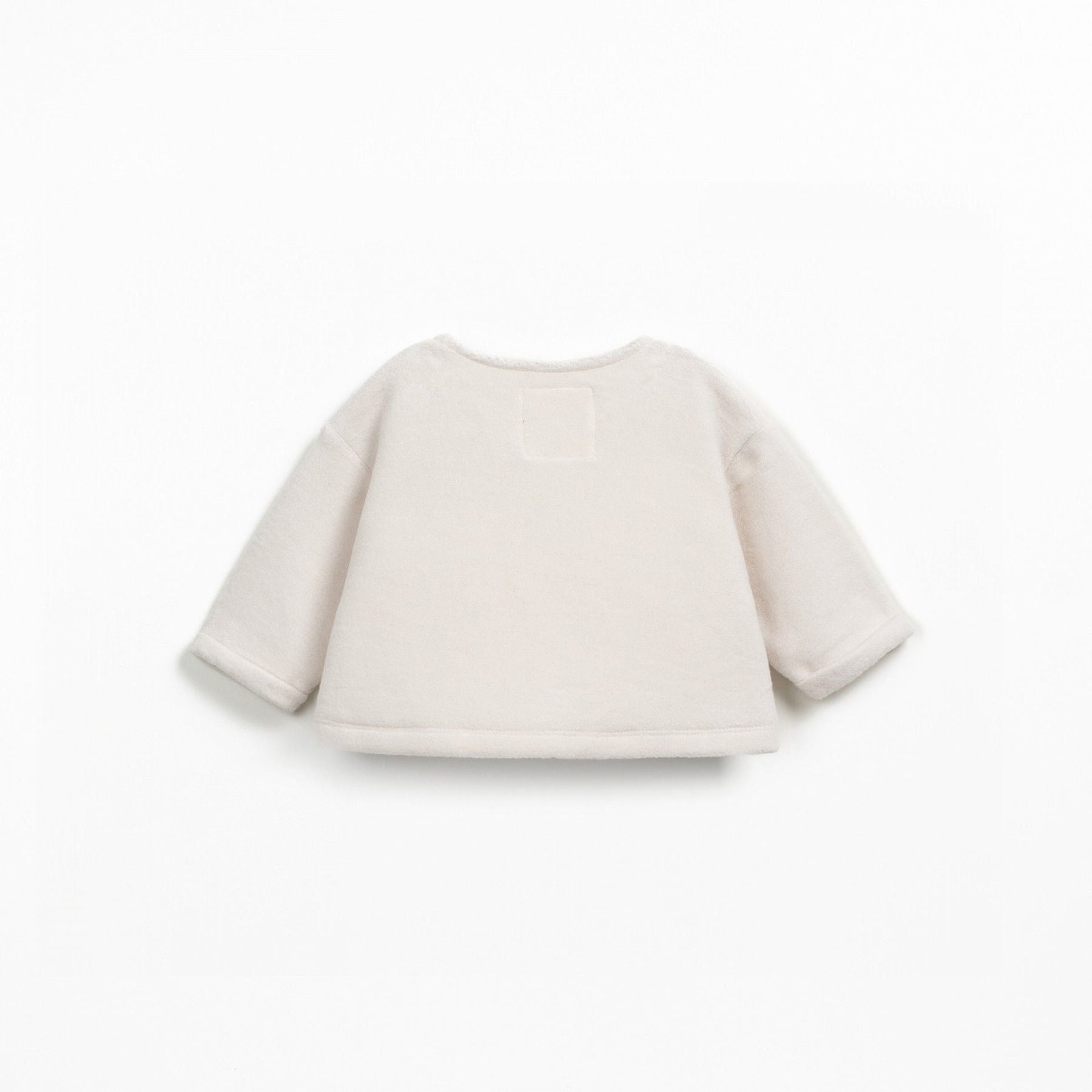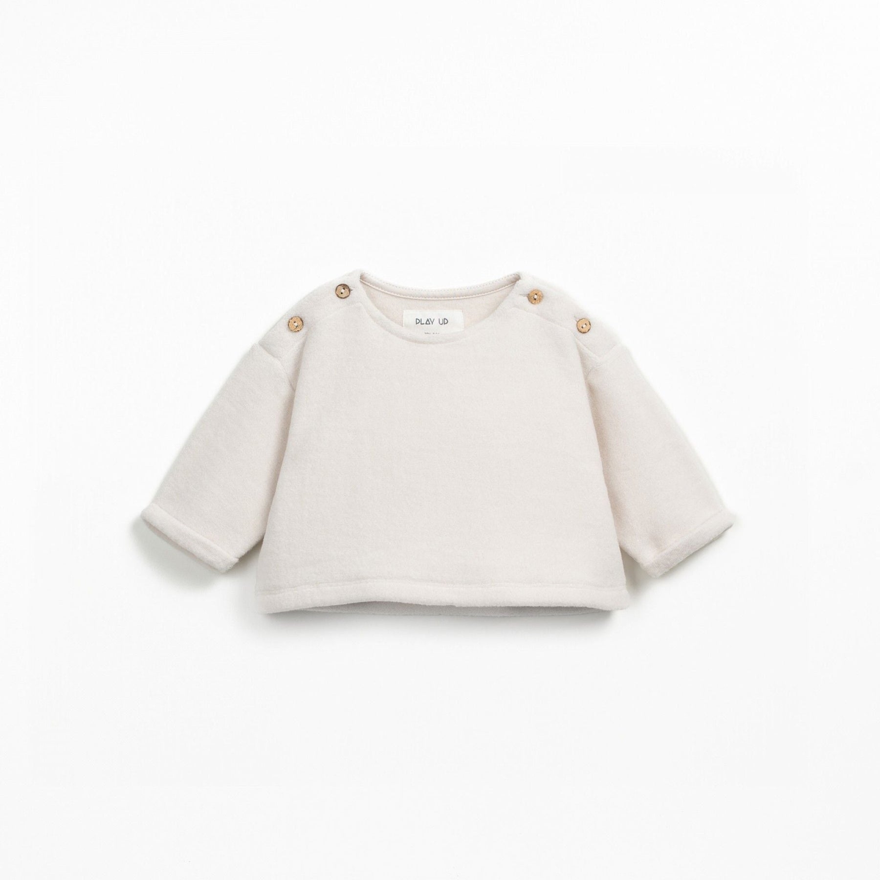 Dit is een zachte, lichtkleurige sweater van Play up gemaakt uit 100% organisch katoen. De sweater heeft knoopjes aan de hals om het aan- en uittrekken te vergemakkelijken.
