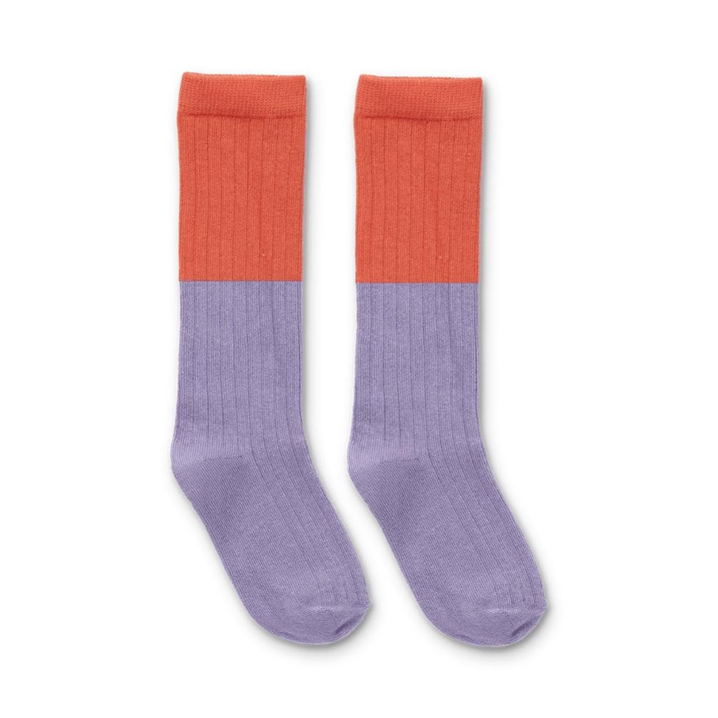 Paars rode wintersokken met streepjes van Sproet & Sprout.