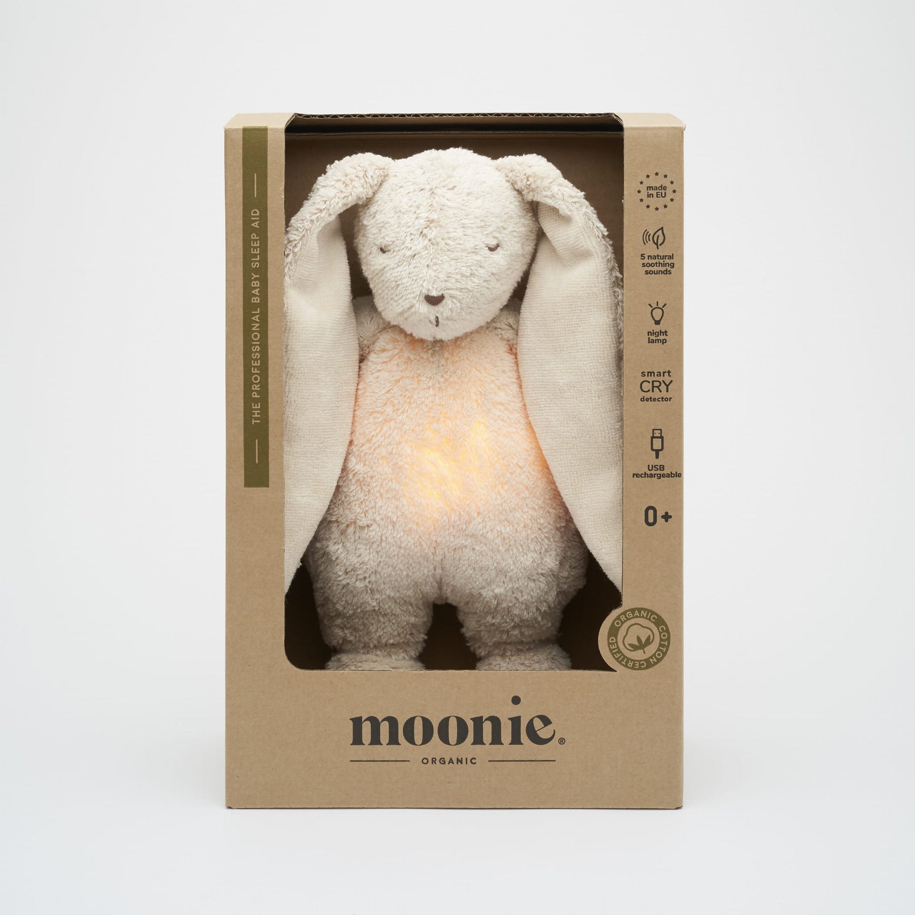 Deze superzachte knuffelkonijnen, gemaakt uit lekker zacht organisch katoen, hebben 5 natuurlijke, kalmerende geluiden (gebaseerd op pediatrisch onderzoek) waaruit je kan kiezen om een rustige slaap bij baby's en kindjes te bevorderen.