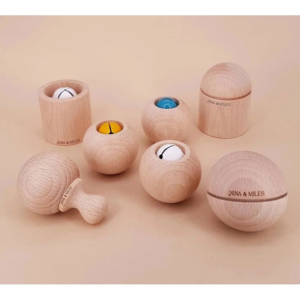 Wanneer de bal wordt geschud, klinkt er een harmonieus, rustgevend geluid dat de nieuwsgierigheid van je baby prikkelt en tegelijk een gevoel van kalmte brengt. De ronde vorm is niet zomaar gekozen: ze verwijst naar de geometrische vormen binnen de Montessori-filosofie, waardoor baby’s spelenderwijs kennismaken met de wereld van vormen en volumes.