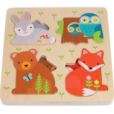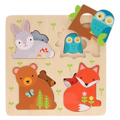 Koppel schattige dieren aan hun knusse huisjes met deze achtdelige puzzel met meerdere lagen. Baby-eekhoorns, kikkers, slakken en vogeltjes staan klaar om lekker in hun natuurlijke bedjes te kruipen. Kleintjes kunnen de puzzel uit elkaar halen, hun fantasie gebruiken om creatief te spelen met de dikke houten stukjes en vervolgens alle dieren weer in hun huisjes stoppen als het speeltijd voorbij is. Deze set is perfect voor kinderen vanaf 18 maanden en stimuleert de ontwikkeling van fijne motoriek, hand-oogcoördinatie, probleemoplossend vermogen en kleur- en vormherkenning. Gemaakt van FSC-hout en verpakt in 75% gerecycled materiaal met plantaardige inkt.