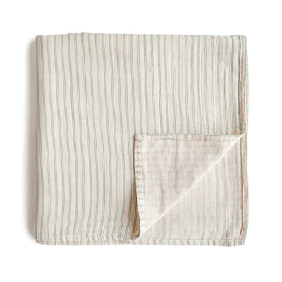 Mushie Organic Cotton Muslin Swaddle Blanket Sage Stripes