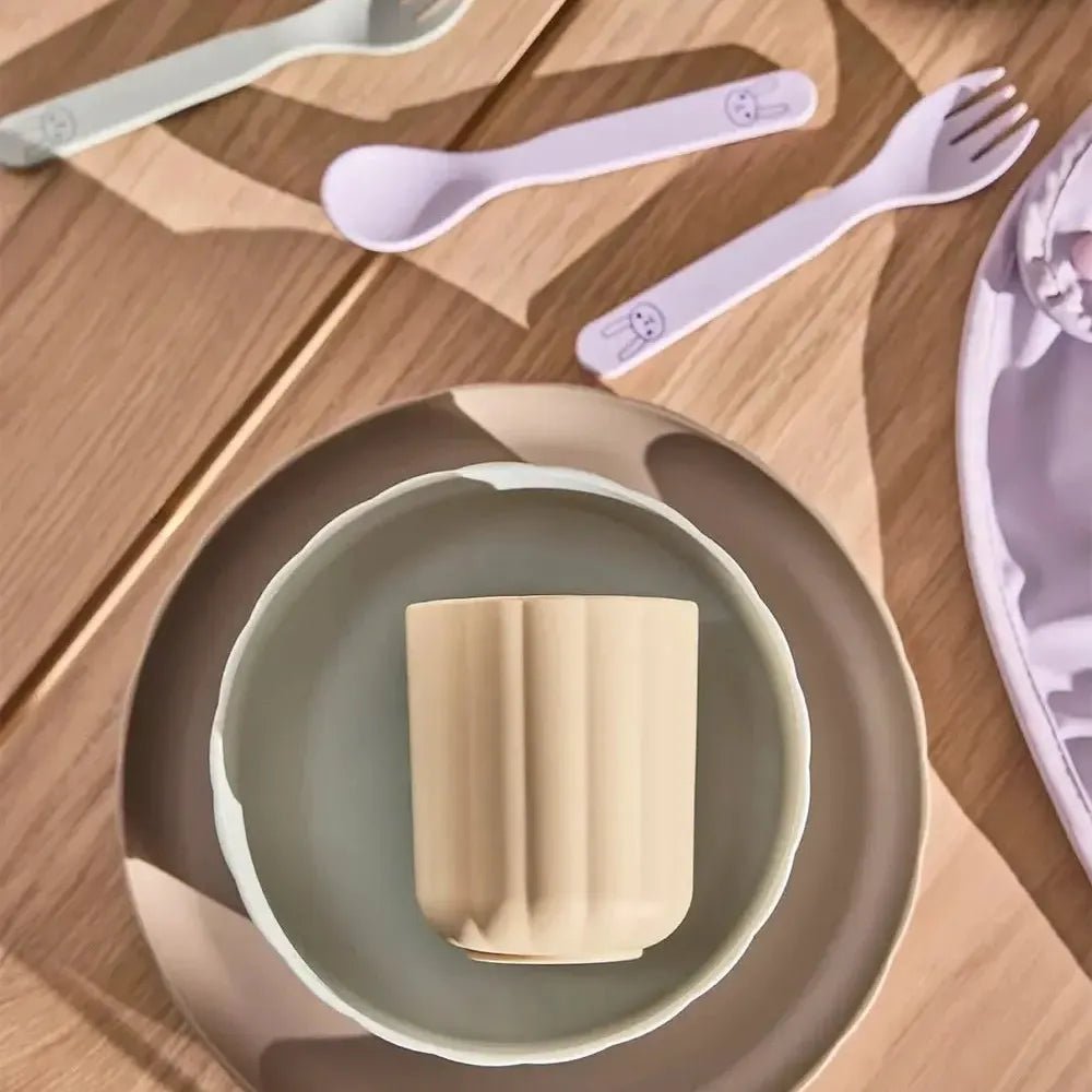 Dit bestek setje van OYOY is gemaakt van milieuvriendelijk PLA en heeft afgeronde vormen zodat peuters veilig kunnen oefenen met zelfstandig eten. Het bestek is perfect op maat voor kleine handjes. Als het bestek versleten is, kan het worden gesorteerd als hard plastic en gerecycled tot nieuwe producten. De set bevat een lepel en een vork. Het bestek heeft een mat zijdeachtig oppervlak en past bij de rest van de Pullo-collectie. Mag in de vaatwasser. Niet geschikt voor de magnetron.
