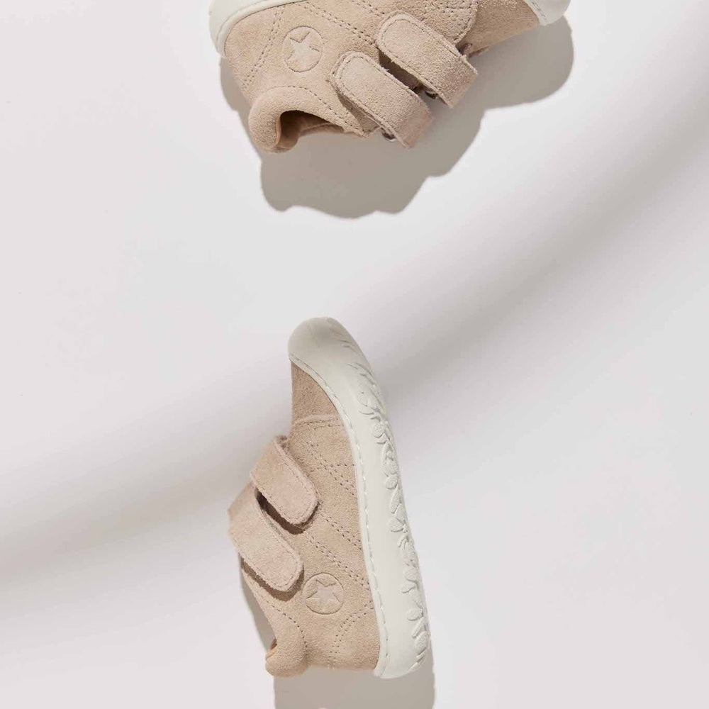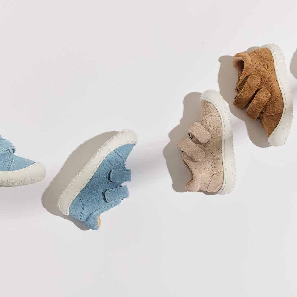 Gemaakt van zacht, duurzaam suede leer met een flexibele rubberen buitenzool, bieden deze comfortabele babyschoenen optimale grip en stabiliteit. De versterkte rubberen teen en vaste hielkap beschermen de voetjes en bevorderen een gezonde ontwikkeling. Handgemaakt in Portugal met Deens design, zijn ze ademend, lichtgewicht en geschikt voor dagelijks gebruik.