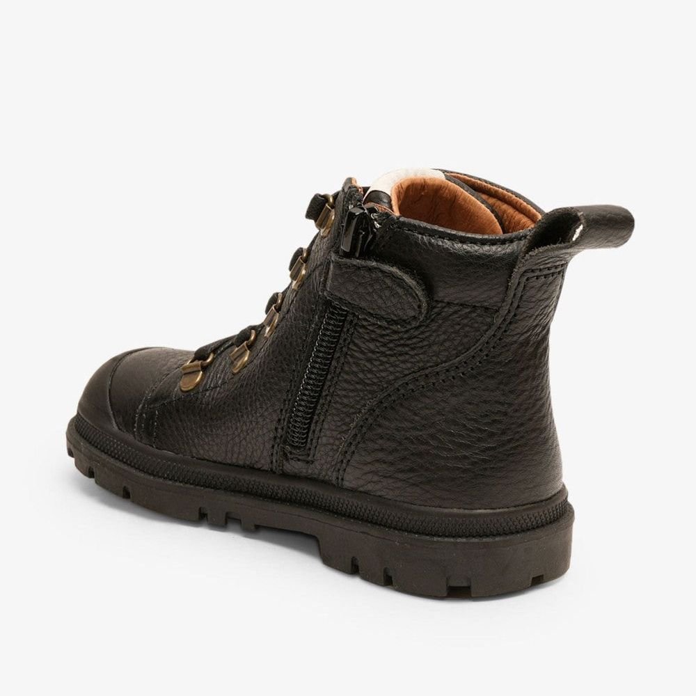 De Bisgaard Lesley Black Boots zijn stoere en stevige leren kinderschoenen voor actieve kinderen. Het bovenwerk is gemaakt van zacht, plantaardig gelooid leer en omsluit de voet met optimaal comfort, terwijl de binnenkant eveneens van soepel leer is voor ademend vermogen en een zachte pasvorm. De rubberen tip en zool bieden extra bescherming en grip, ideaal voor kleine avonturiers.
