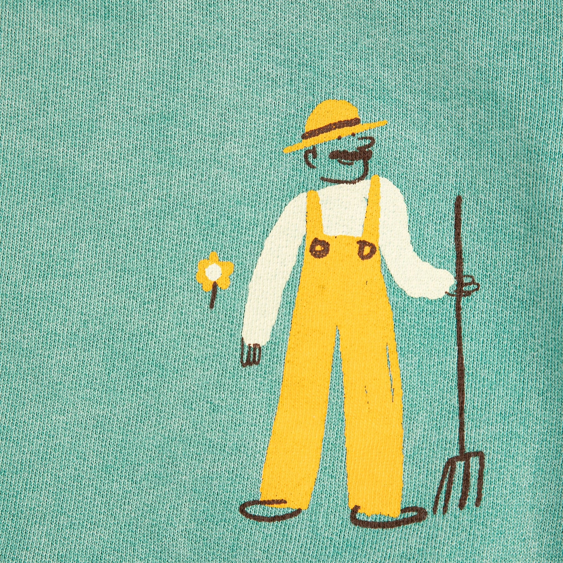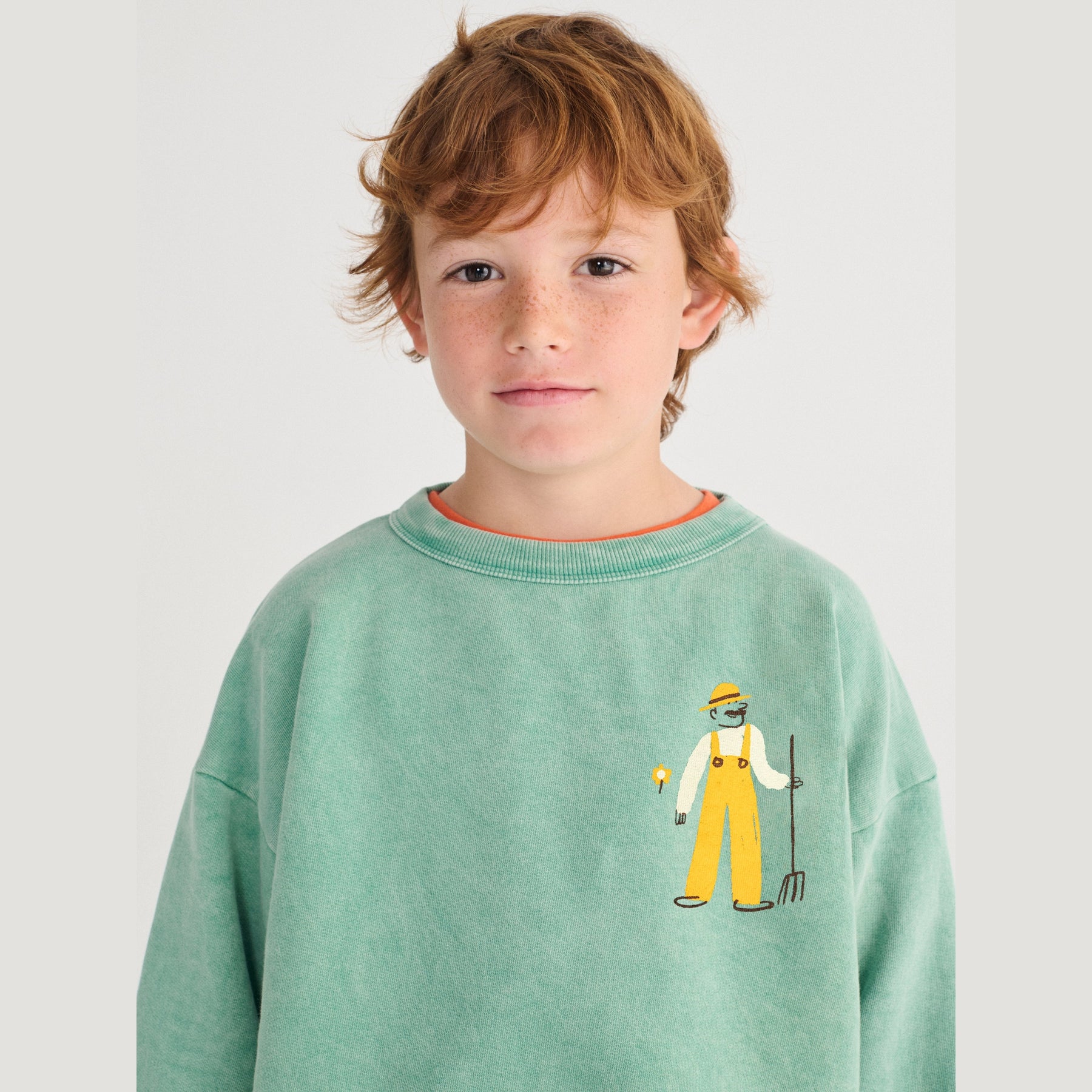 Groene sweater met boerderijdieren en boer op van Bobo Choses.