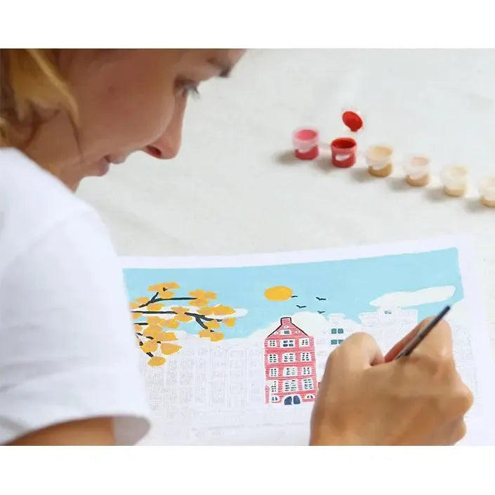 Met deze schilderkit van La petite épicerie kan iedereen de kunstenaar in zichzelf ontdekken. Door volgens de nummertjes te schilderen komt een typisch Amsterdams beeld tevoorschijn. Het is een illustratie van Nidhi Kachhadiya, een artieste die gebaseerd is in India. Wanneer je klaar bent met de schilderkit heb je zowaar je eigen kunstwerk in huis!