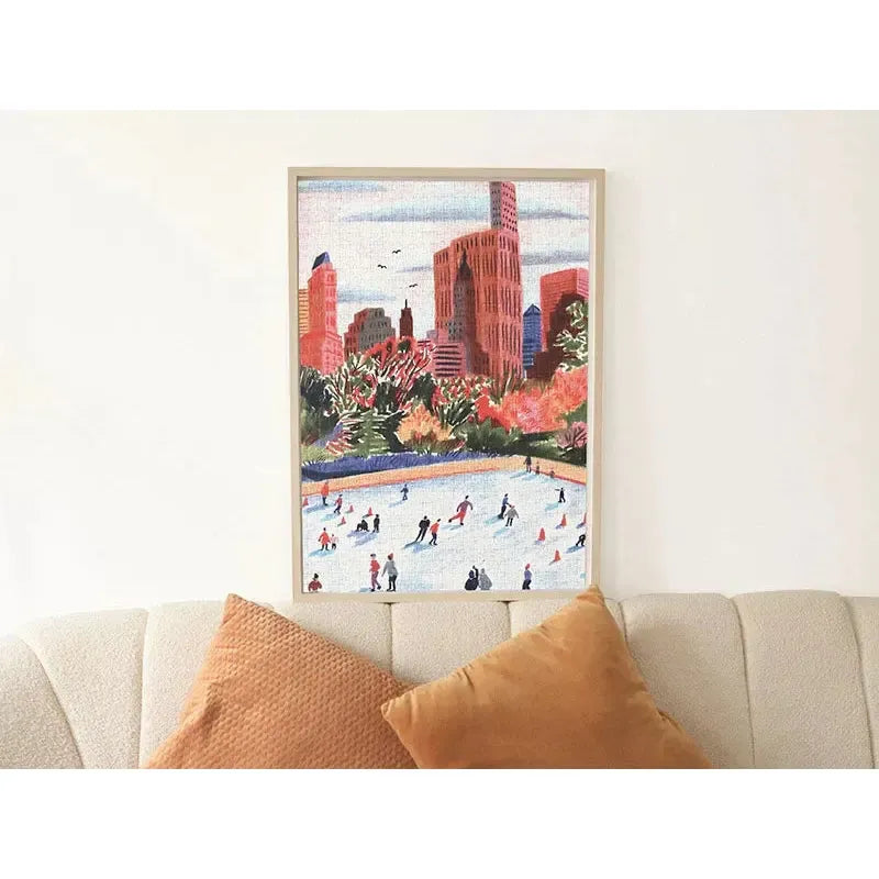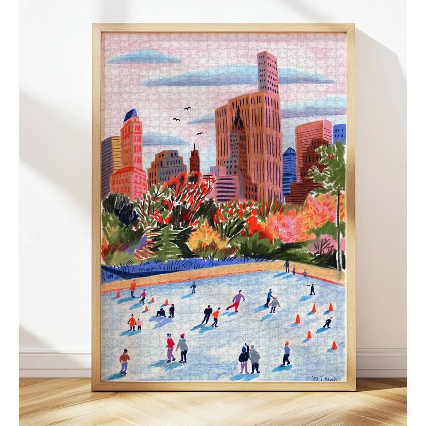 Als je deze puzzel maakt krijg je een prachtig beeld van ijsschaatsers in New York. De tekening is geïllustreerd door de getalenteerde Ban Hee. Ben je klaar met je puzzel? Door hem in te kaderen heb je een kleurrijk stukje kunst in huis!