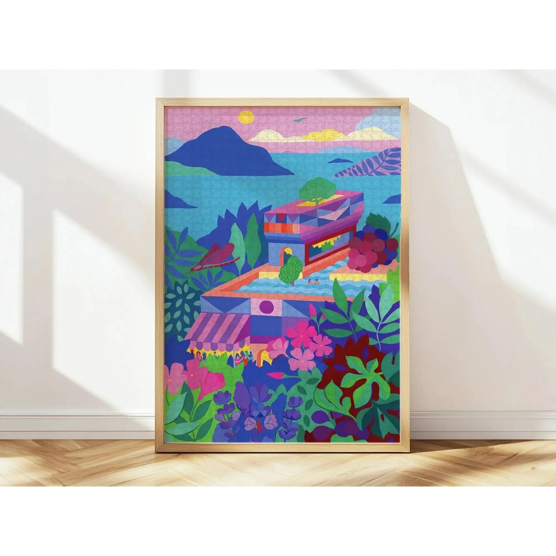 Deze puzzel roept met zijn prachtige kleuren een zwoel zomergevoel op. De tekening is geïllustreerd door artieste Chloé Weinfeld, die in Lyon gebaseerd is. De tekening is geïnspireerd op haar jeugd in La Réunion. Ben je klaar met je puzzel? Door hem in te kaderen heb je een kleurrijk stukje kunst in huis!