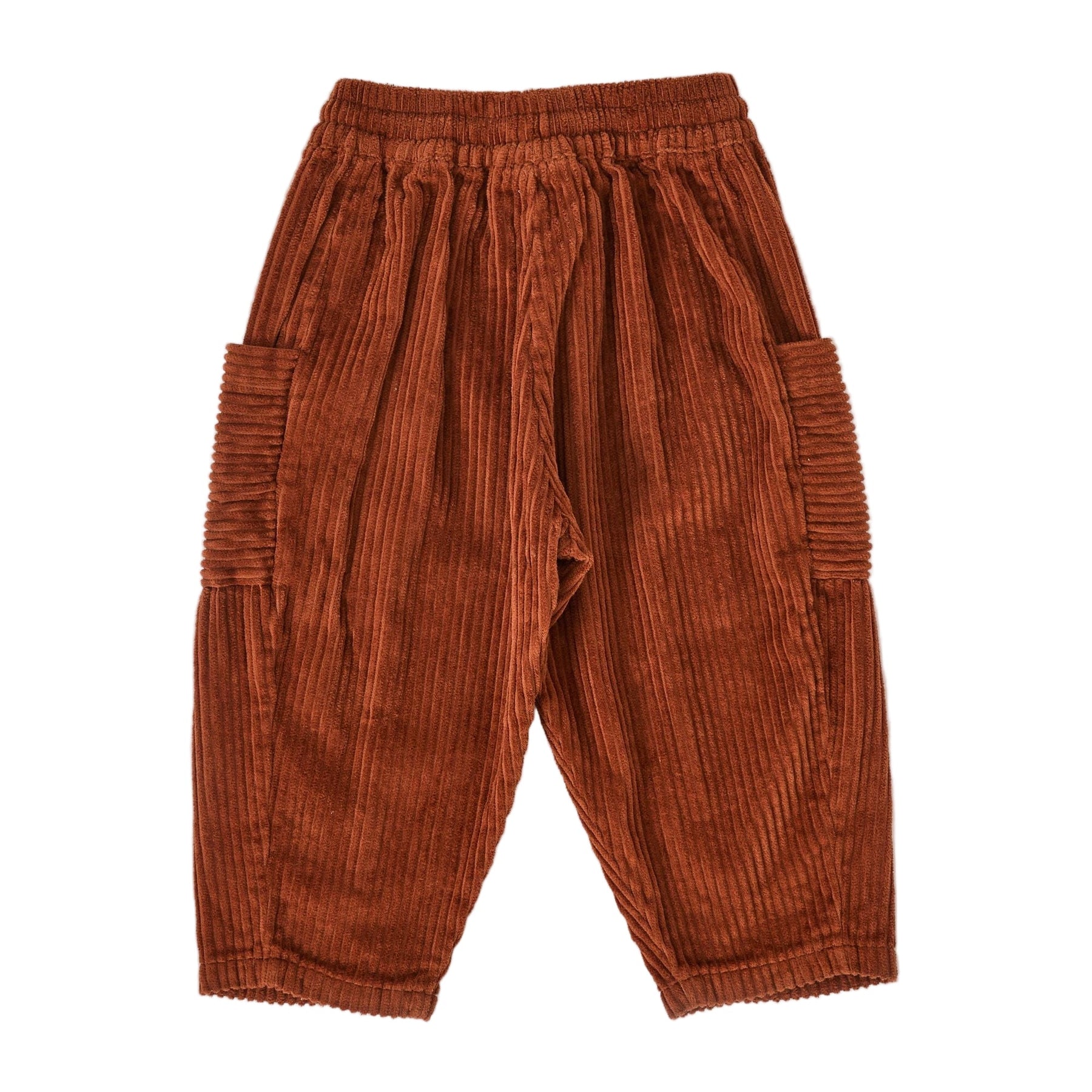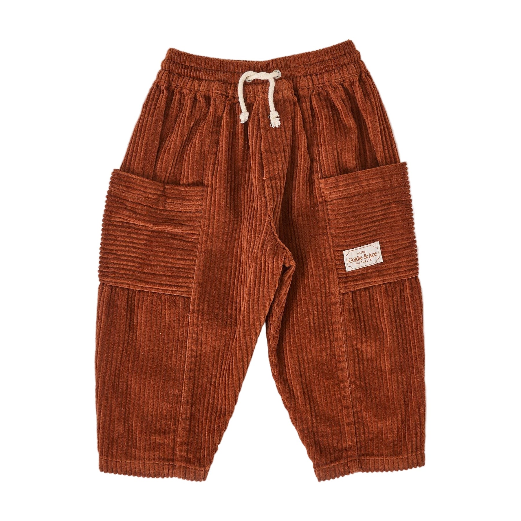 Dit is een comfortabele broek van Goldie + Ace, gemaakt uit ribfluweel. De broek heeft een relaxed fit met wijde pijpen, die aan de enkel wel weer, door een elastiek, aansluiten. De broek heeft grote zakken om al je schatten in op te bergen. De broek blijft gemakkelijk zitten door de elastische taille en het trekkoord.