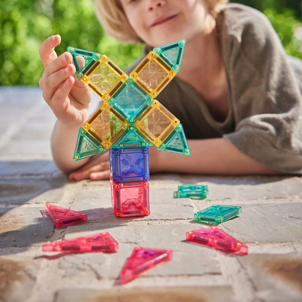 De zachte pastelkleuren zorgen voor een dromerige uitstraling terwijl kinderen spelenderwijs leren. Deze magnetische tegels stimuleren STEAM-ontwikkeling (Science, Technology, Engineering, Art & Math) en helpen bij het herkennen van vormen, het bouwen van structuren en het logisch nadenken. Combineer de mini’s met je bestaande Cleverclixx-sets en voeg meer detail toe aan je bouwwerken – mix, match en laat de fantasie groeien!