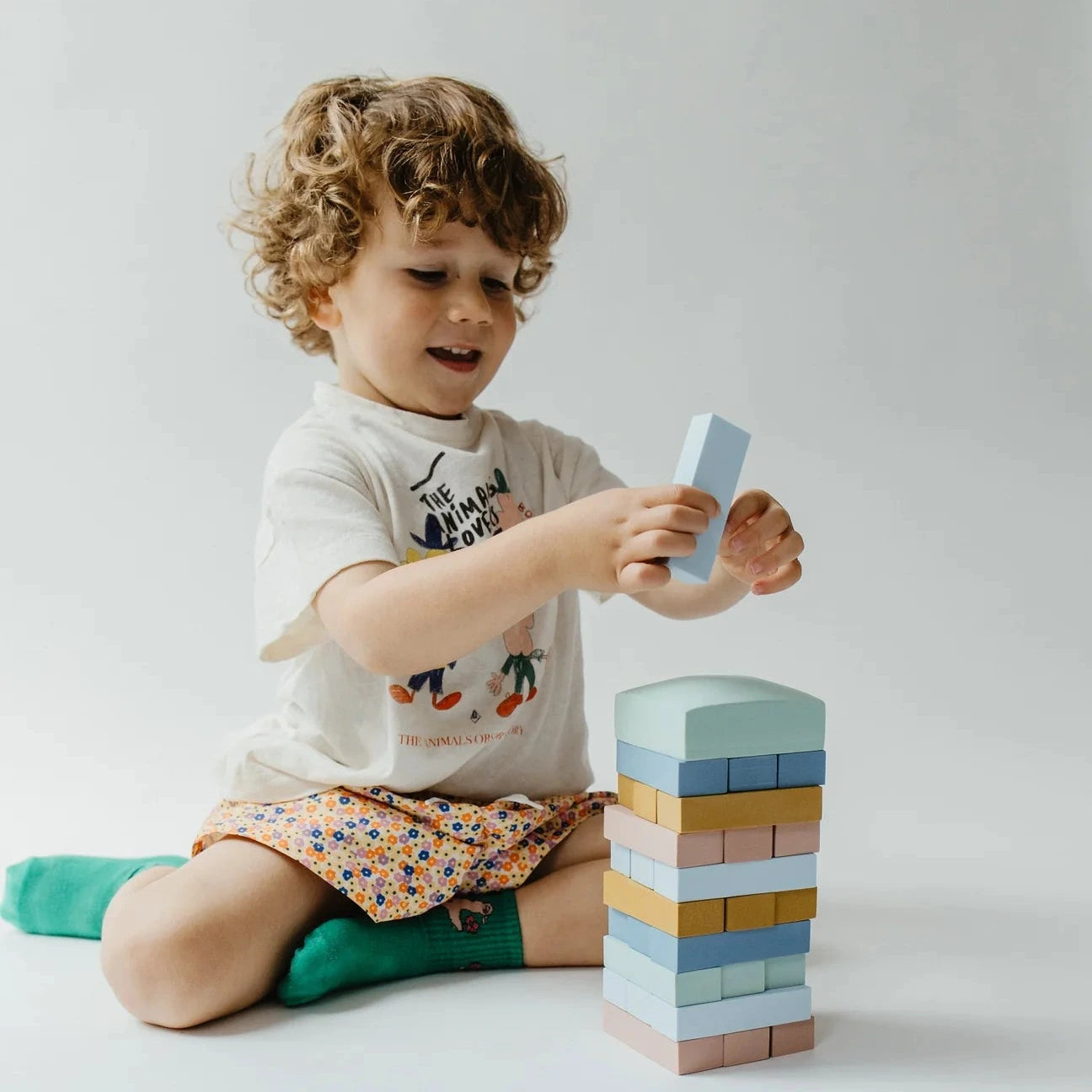De Tower Blocks set van Moes is ontworpen om de verbeelding van kinderen te stimuleren terwijl ze bouwen, ontdekken en creëren.