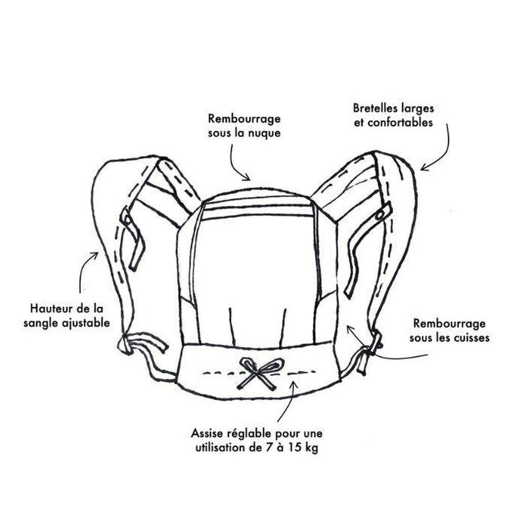✓ Draagpositie: op de buik of hoog op de rug