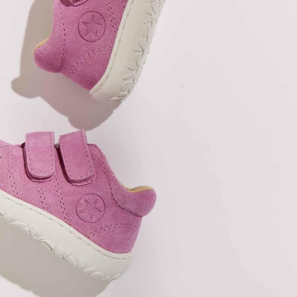 Babyschoentjes voor de voeten van kleine avontuurlijke kinderen. Gemaakt van natuurlijke, lichte en soepele materialen, zijn ze speciaal ontworpen om de natuurlijke beweging van de kindervoet te volgen. De schoen heeft een versterkte rubberen teen, die slijtage beperkt en zeer praktisch is voor de allerkleinsten. Met zijn vaste hielkap kan het de enkel de juiste ondersteuning en stabiliteit bieden. Deze babyschoenen zijn handgemaakt in zacht, ademend, natuurlijk leer met chroomvrije lederen voering. De verstelbare klittenbandjes zorgen voor een natuurlijke pasvorm en een gemakkelijke sluiting voor zelfs de allerkleinsten.
