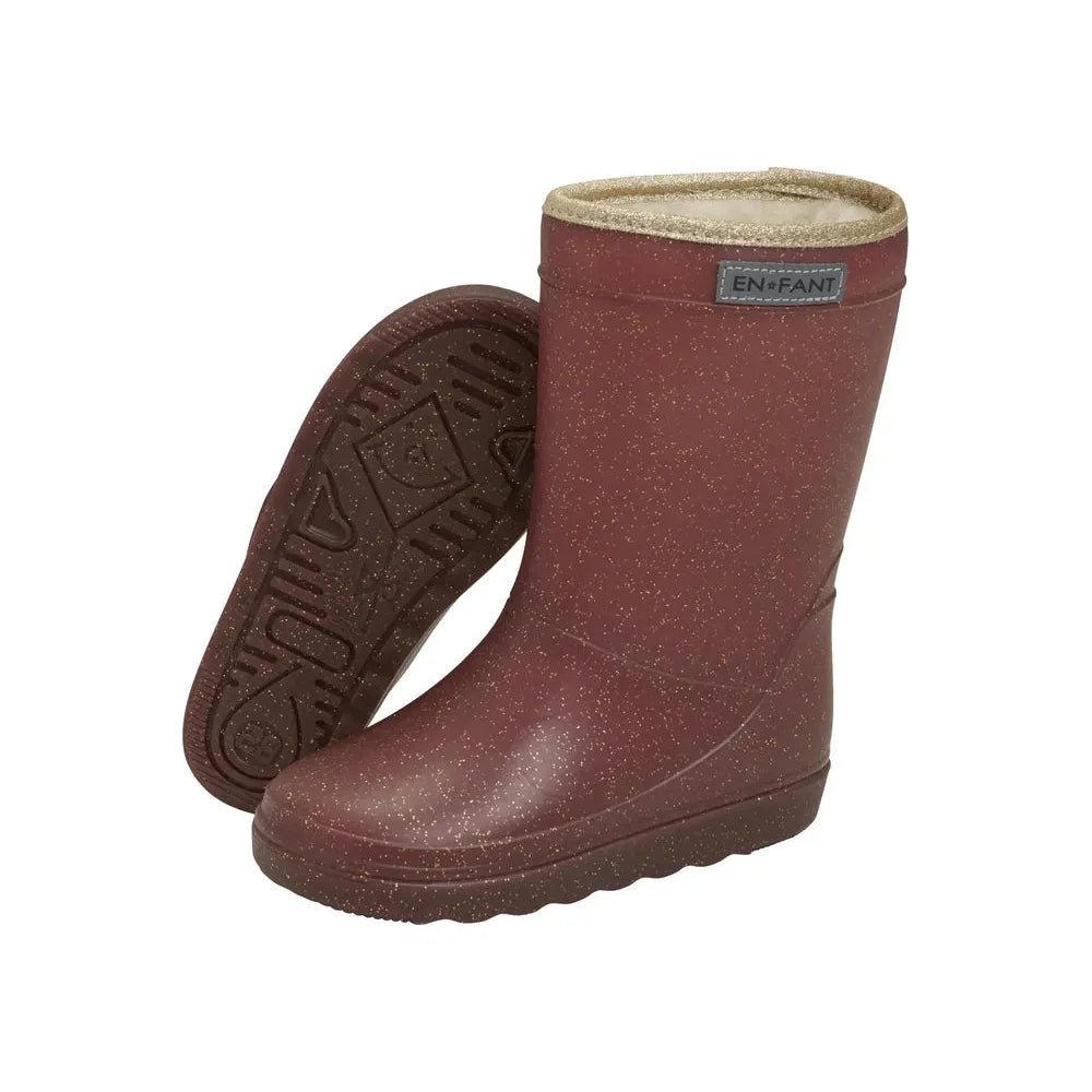 Warme thermische laarzen van En Fant. De laars is effen met glittereffect. De laars heeft een opgenaaid En Fant logo aan de bovenkant. De laars is gevoerd met een wolmix die, samen met het aluminium membraan in de zool, helpt om de voeten warm te houden. De thermolaarzen zijn gemaakt van het lichtgewicht Megol rubber. Megol is duurzaam en zorgt er tegelijkertijd voor dat het kind goed kan bewegen. De thermolaarzen hebben diepe profielgroeven in de flexibele onderkant, waardoor het makkelijker is om houvast te houden.