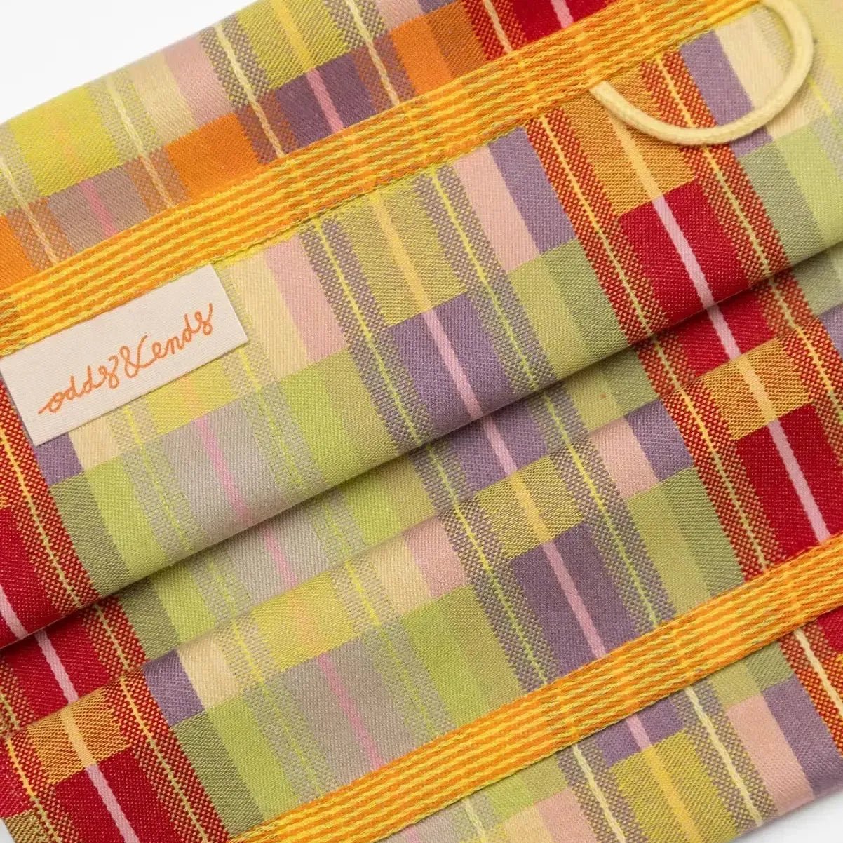 Colorful home textiles made of industry leftovers! When factories dye yarns to weave textiles, they make some extra—just in case—but they often go unused. The Odds & Ends textiles are designed to get the most out of these remainders, creating unexpected color combinations.
