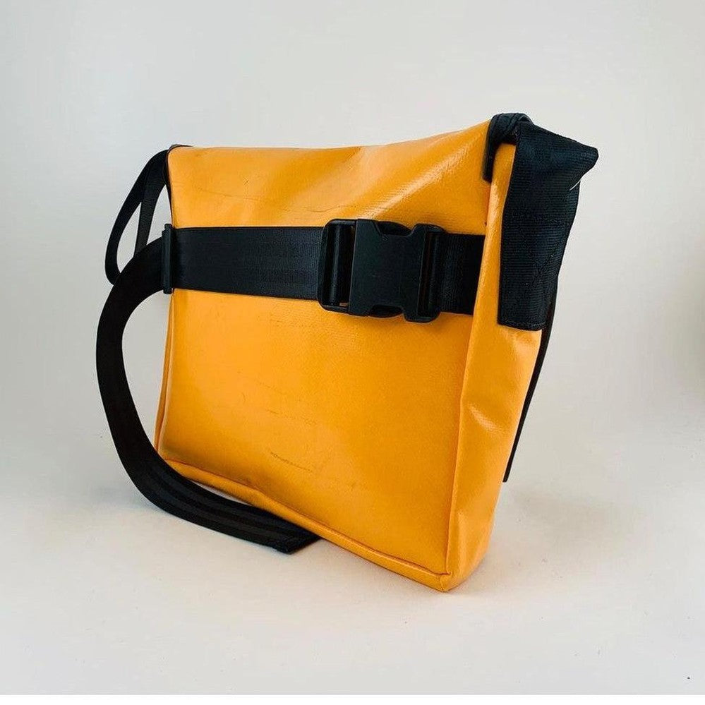 Deze grote messenger tas van FREITAG gemaakt uit gerecycleerd vrachtwagendekzeil is uniek. Er zijn er geen twee zoals deze.  Kijk hier in deze video wat de F14 DEXTER kan.
