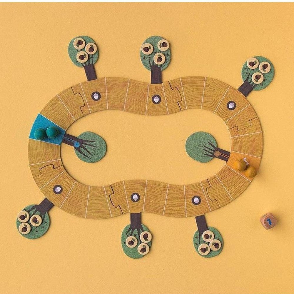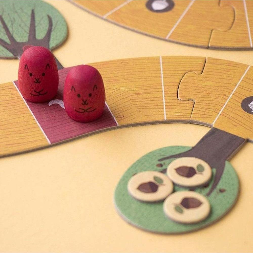 Dit leuke race- en strategiespel kan gespeeld worden met max. 4 spelers vanaf 7 jaar. De eekhoorn die het meeste eikels naar hun holletje kan brengen, wint het spel! Hoera!