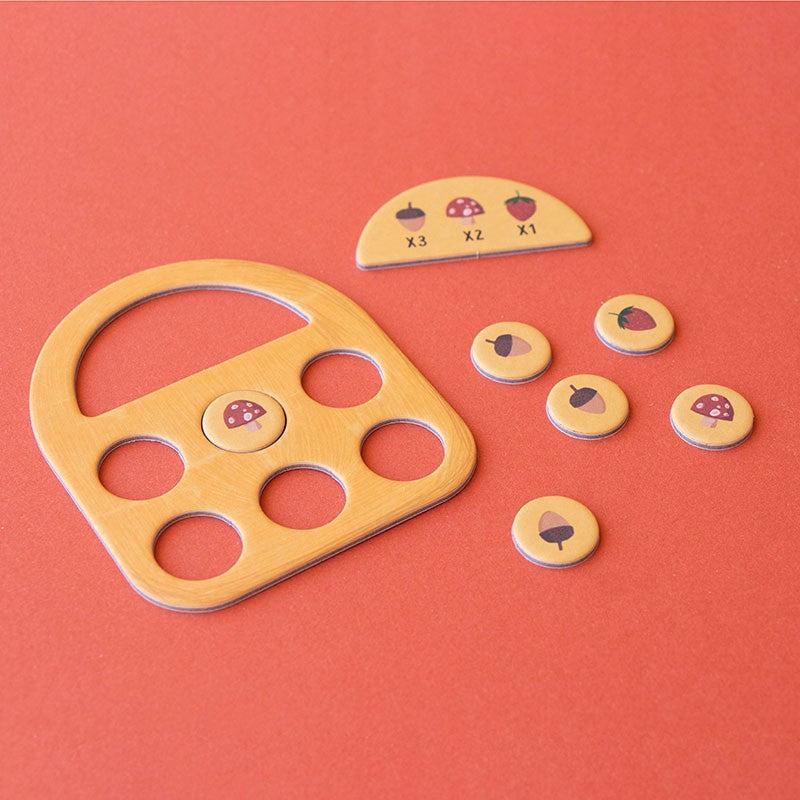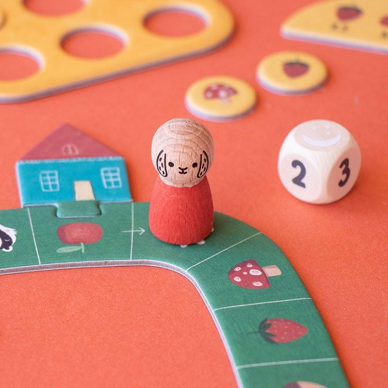 In een rustig hoekje van het bos verzamelen konijnen fruit voordat de avond valt. Maar pas op! Een slimme das ligt op de loer om hun eten te stelen. Londji Tiny Game - Strawberries is een strategiespel: vul je mandje voor de anderen!