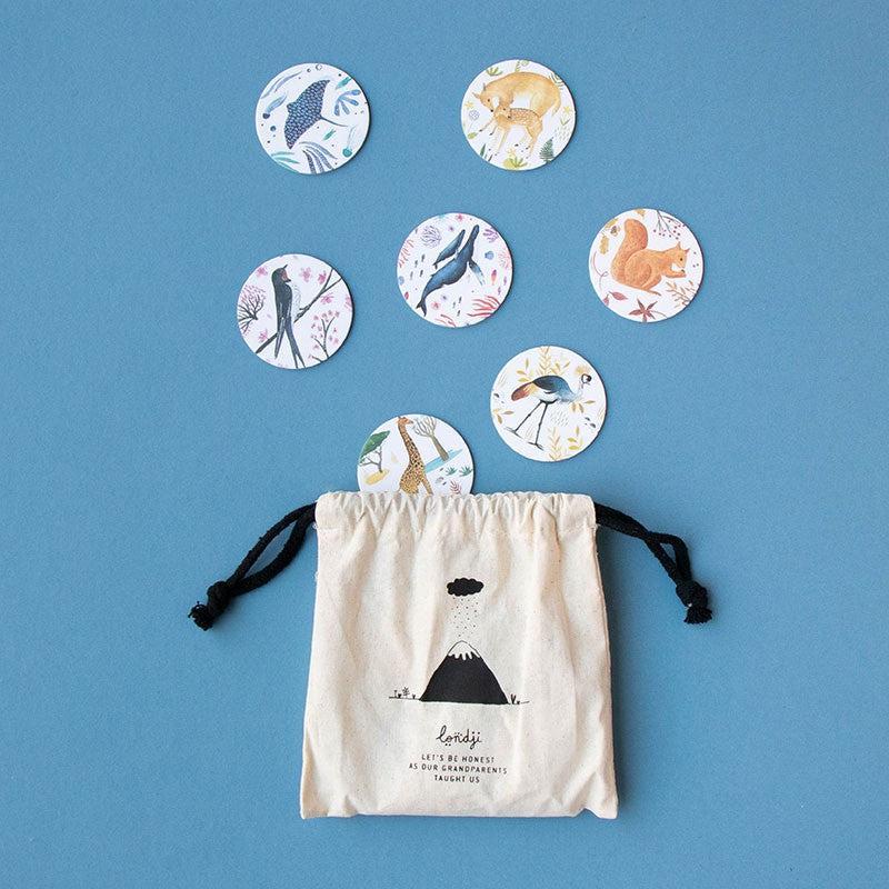 Walvissen, giraffen, flamingo's, eekhoorns, pinguïns... Ontdek de wilde dieren van Londji met dit geheugenspel voor alle leeftijden!