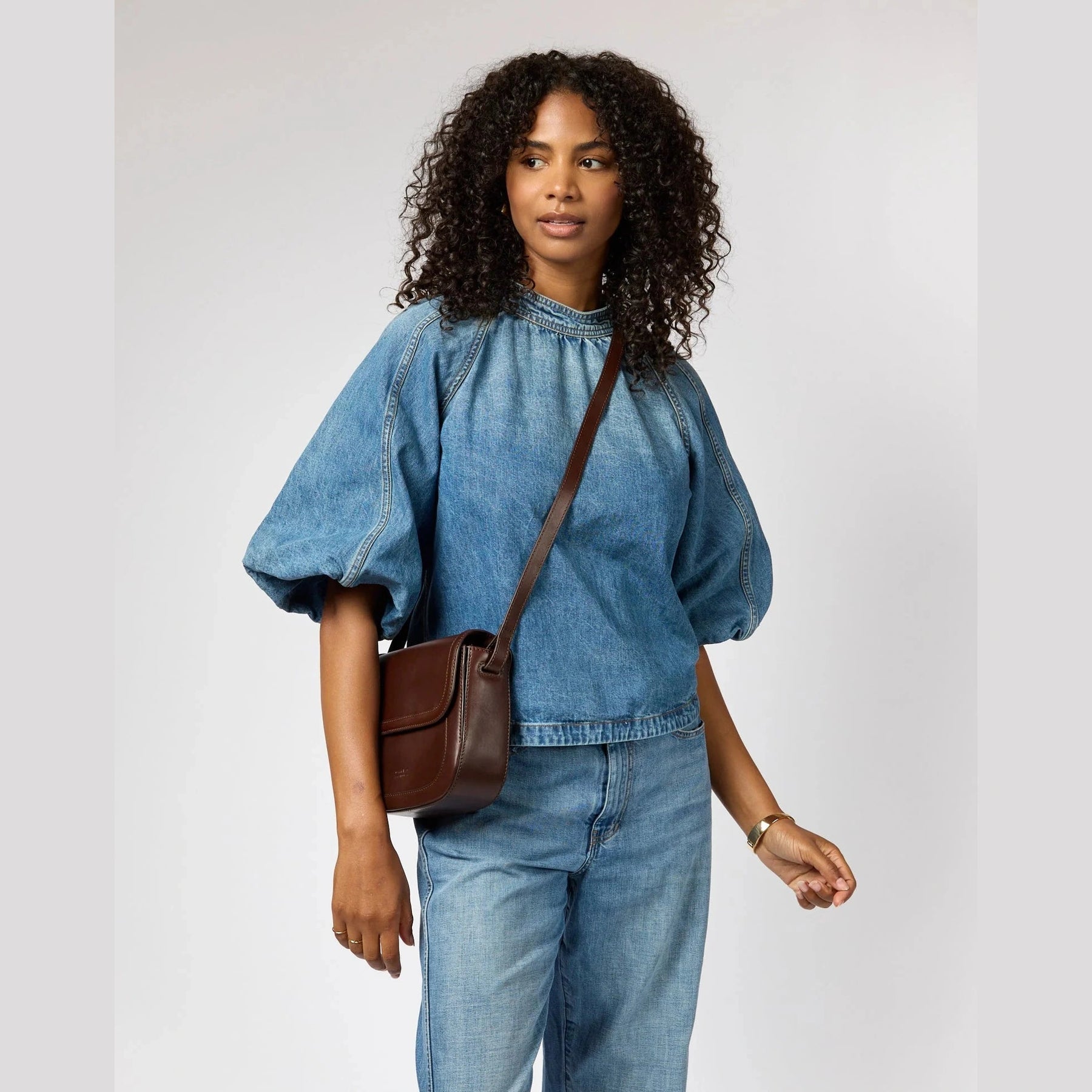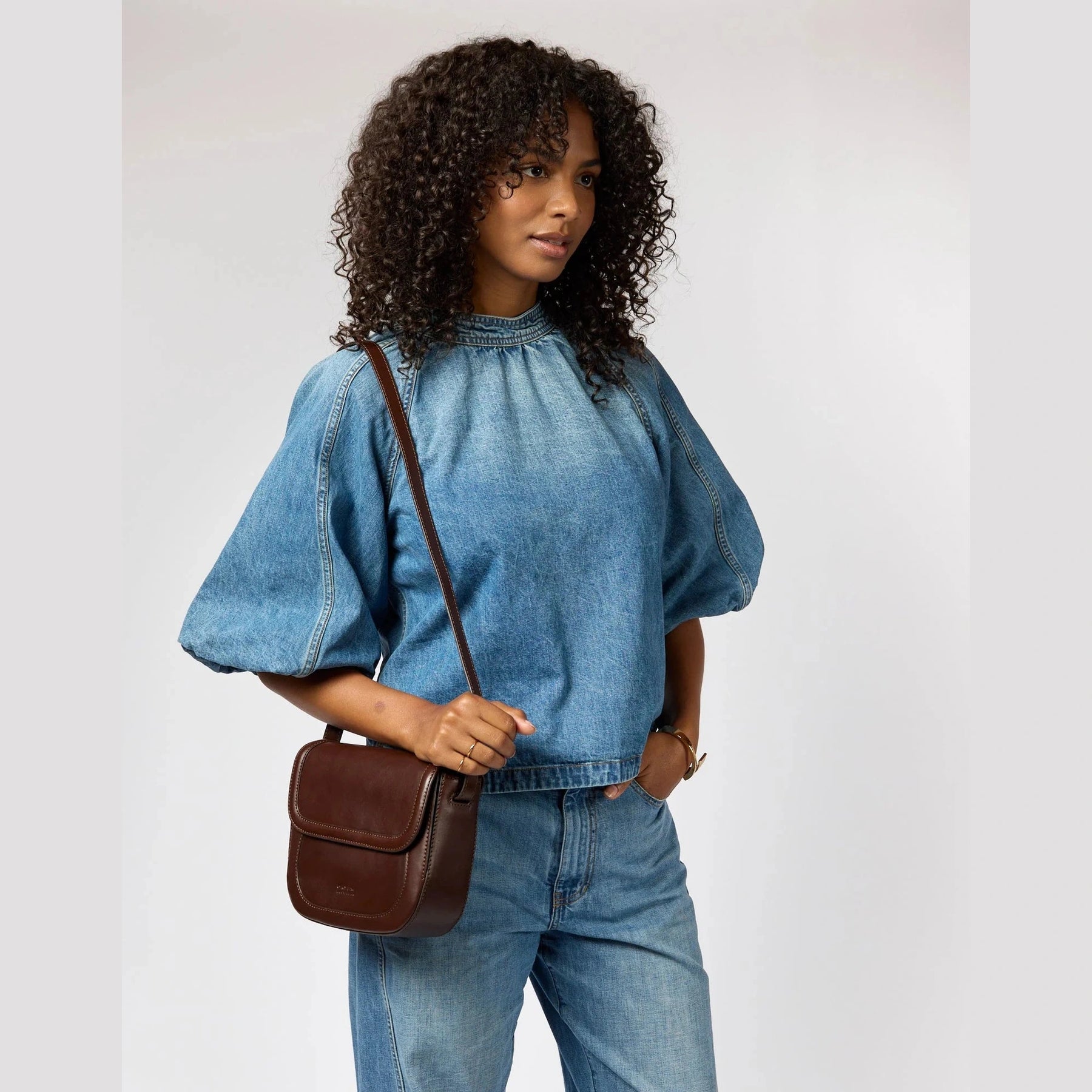 Nina in Chocoladebruine Croco voegt diepte toe aan een minimalistisch silhouet. De structuur van het croco-embossednleer contrasteert mooi met de zachte ronding van de overslag, terwijl de hardwarevrije afwerking het ontwerp extra clean houdt. Met een verstelbare strap, drie binnenvakken en een compact formaat is Nina zowel functioneel als opvallend – met stijl die blijft.