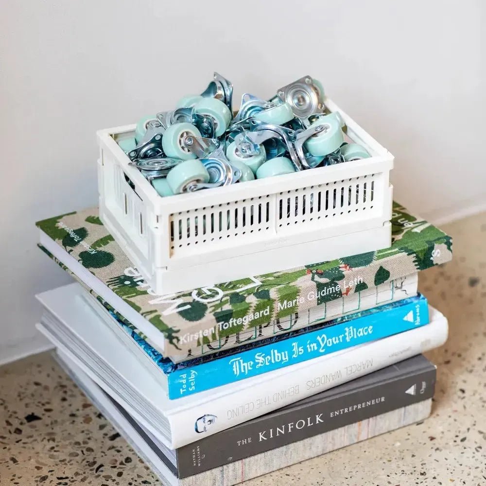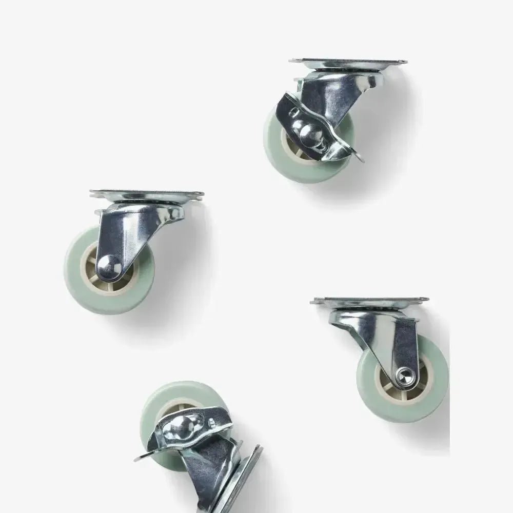 Set van 4 wielen. Met de set wielen krijg je nog meer gebruiksmogelijkheden van je Made Crates. Ze veranderen de maxikrat in een kleine trolley of een raceauto voor de teddyberen. Maak de veiligheidsgordel vast en zet een helm op - we gaan! Past op maxi Made Crate. 2 met stopfunctie. Bevestigingen inbegrepen. Maximale belasting is 50 kg.