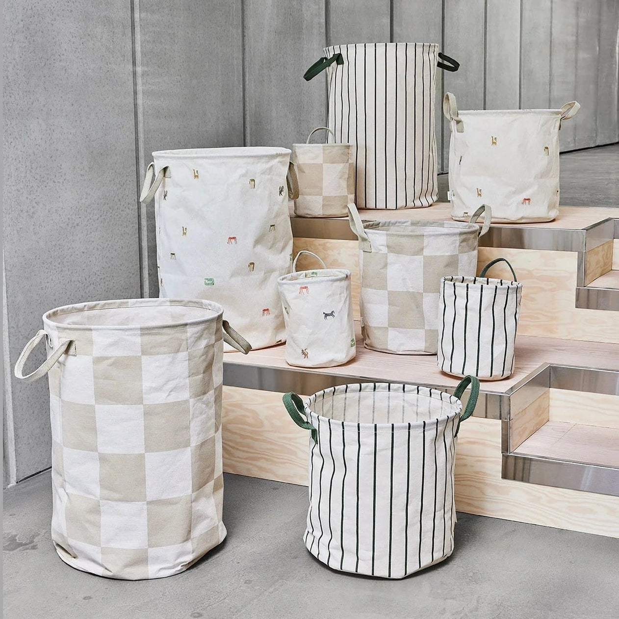Onze tekeningen van de bekende OYOY-dieren op onze Moira was-/opbergmand zijn gemaakt in samenwerking met de Engelse kunstenares Moira Frith. Dit maakt de Moira was-/opbergmand een betoverend item dat charme en karakter toevoegt aan de kamer van uw kind. De mand is versierd met een scala aan schattige dieren, waaronder giraffen, leeuwen, krokodillen en meer. Laat de fantasie van uw kind de vrije loop terwijl ze op hun eigen expeditie gaan en hun speelgoed, kleding en andere spullen opruimen. Verkrijgbaar in meer maten.