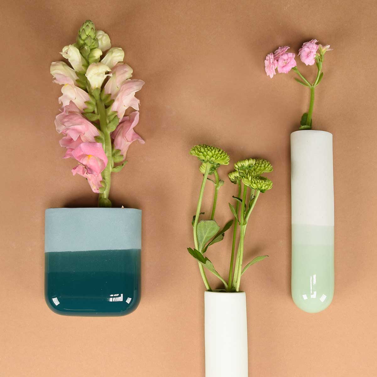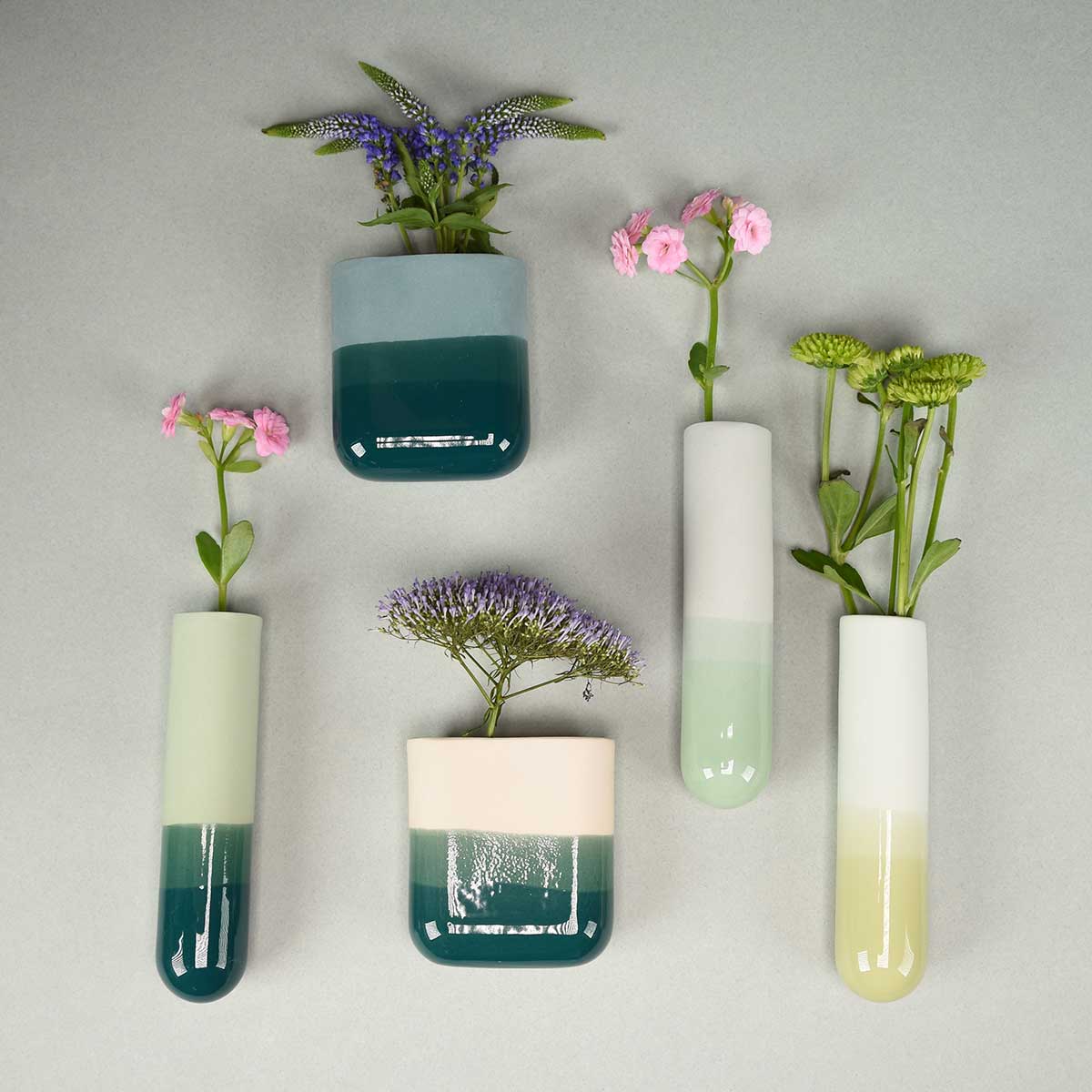 Het Dip Wandvaasje Short van Studio Harm & Elke is een handgemaakt porseleinen vaasje dat je eenvoudig aan de muur hangt. Perfect voor een klein bloemstukje, een droogtakje of als subtiel kunstobject dat rust en frisheid brengt in je interieur.