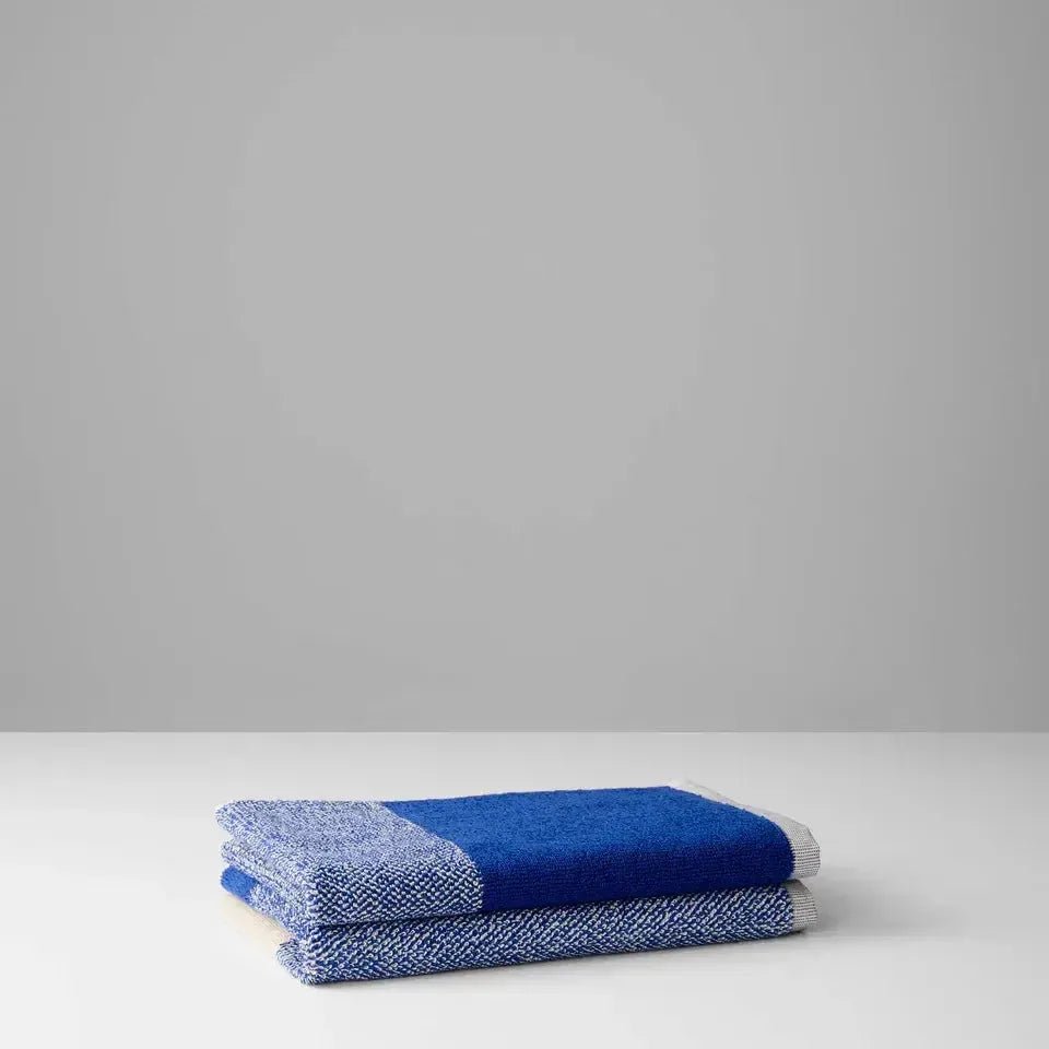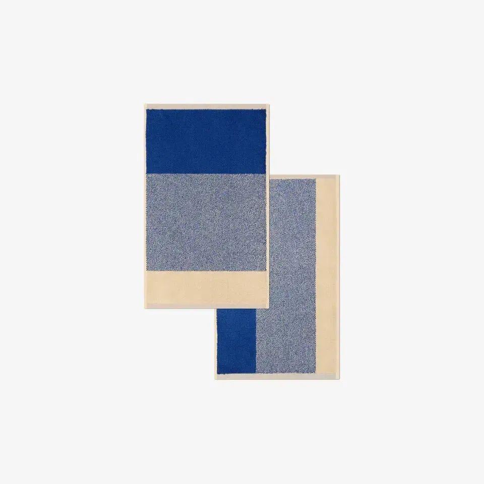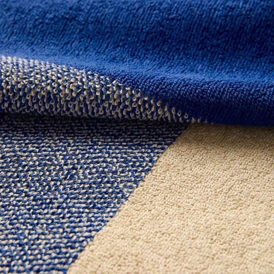 De Suite702 gastendoekjes set Blend Cobalt Blue/Ecru (30x50 cm) is gemaakt van 100% biologisch gekamd terry katoen met een gewicht van 600 g/m². De korte lussen zorgen voor een zachte, compacte structuur die luxe en duurzaamheid combineert. De unieke kleurenmix, waarbij cobalt blue en ecru in het midden samensmelten, geeft je badkamer een verfijnde uitstraling.