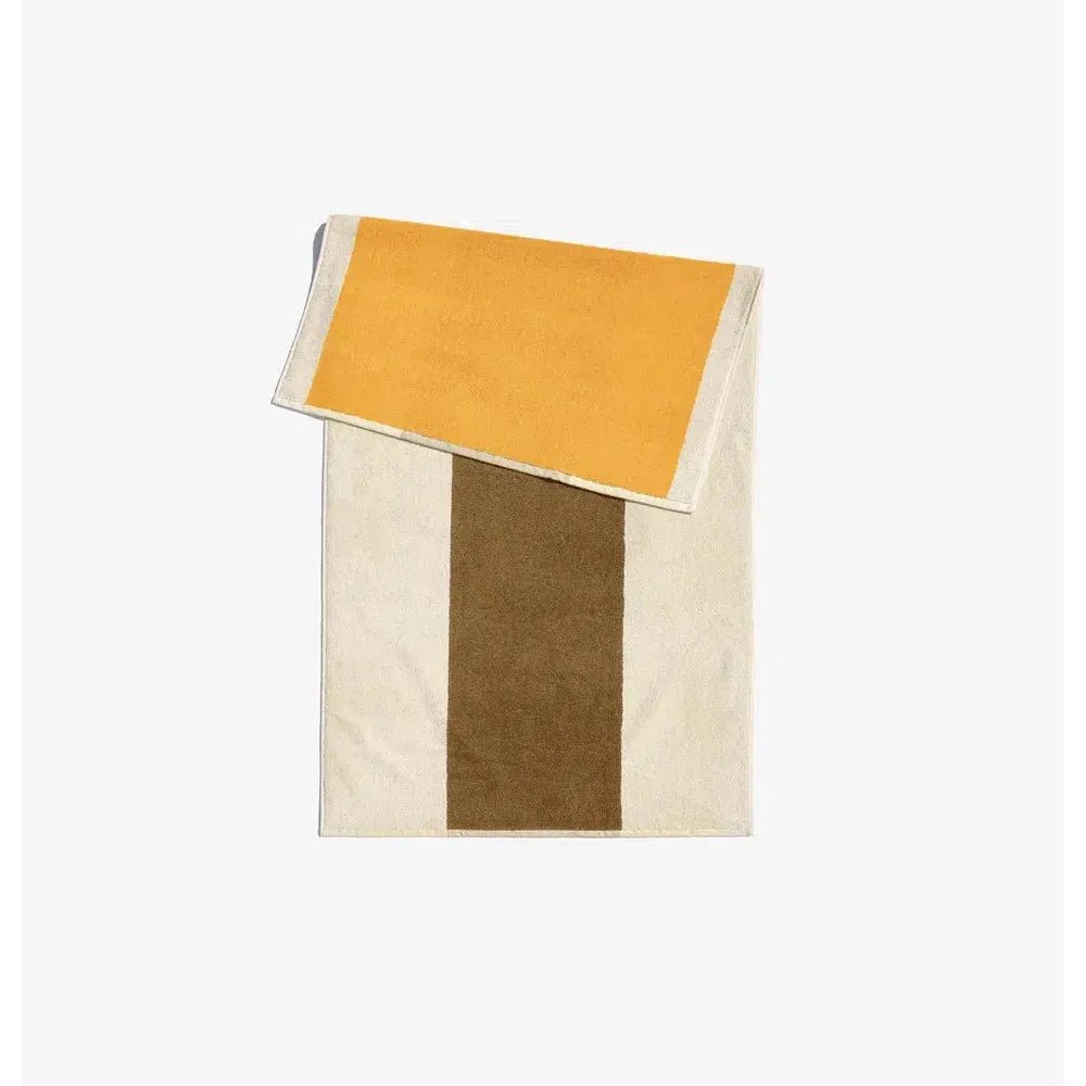 De Suite702 handdoek Sunny Yellow/Honey is een kleurrijk statement voor je badkamer. Deze 50x100 cm handdoek is gemaakt van 100% biologisch terry katoen met een gewicht van 550 g/m², wat zorgt voor een compact én uitzonderlijk zacht gevoel. Dankzij de korte lussen is de handdoek snel absorberend en blijft hij lekker fris aanvoelen. Het unieke design met een geweven streep komt uit de samenwerking met kunstenaar Karel Martens en is geïnspireerd op het kunstproject “Colors on the Beach”. Deze handdoek geeft je badkamer een luxueuze en duurzame upgrade.