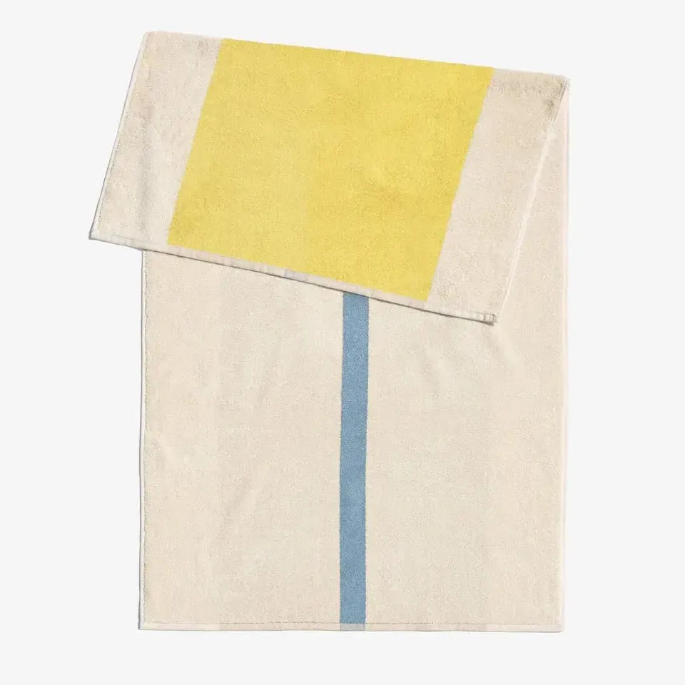 The beach towel royal blue green is 90x180, made of wonderfully soft organic cotton and has a weight of 420 grams per square meter. Thanks to the short loops, the beach towel is nice and light and feels exceptionally soft. The collection is the result of a collaboration with Karel Martens and is based on the art project “Colors on the Beach”.