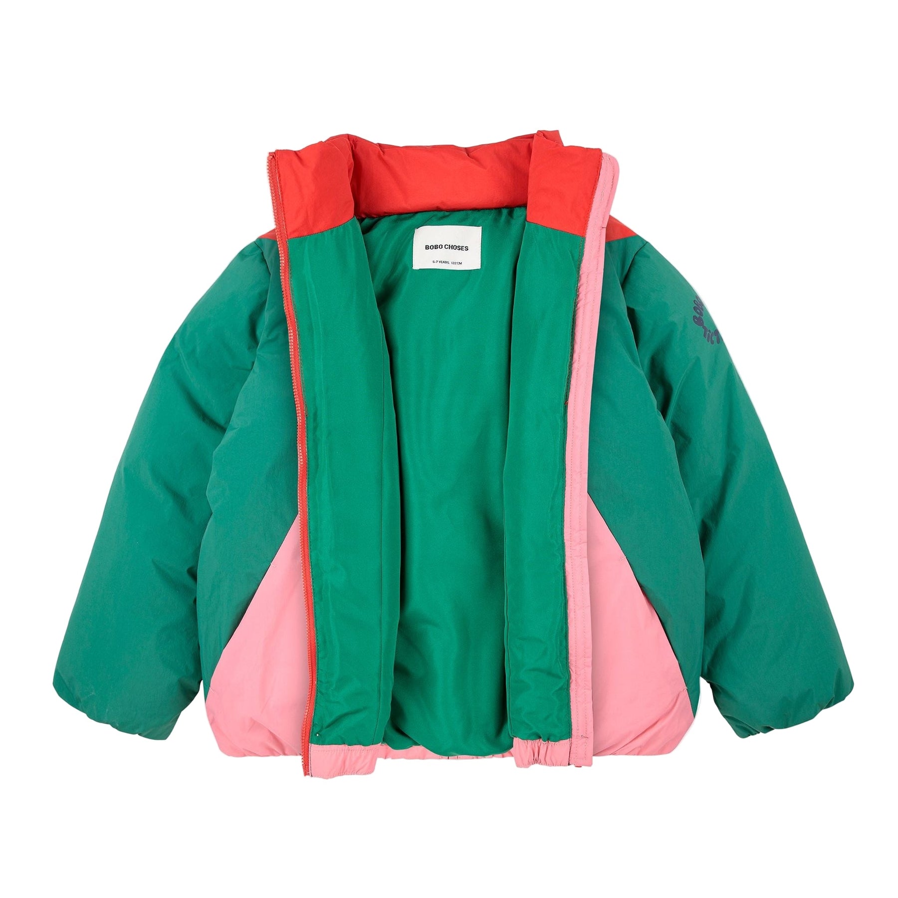 Dikke, warme winterjas met vrolijke kleuren van Bobo Choses.