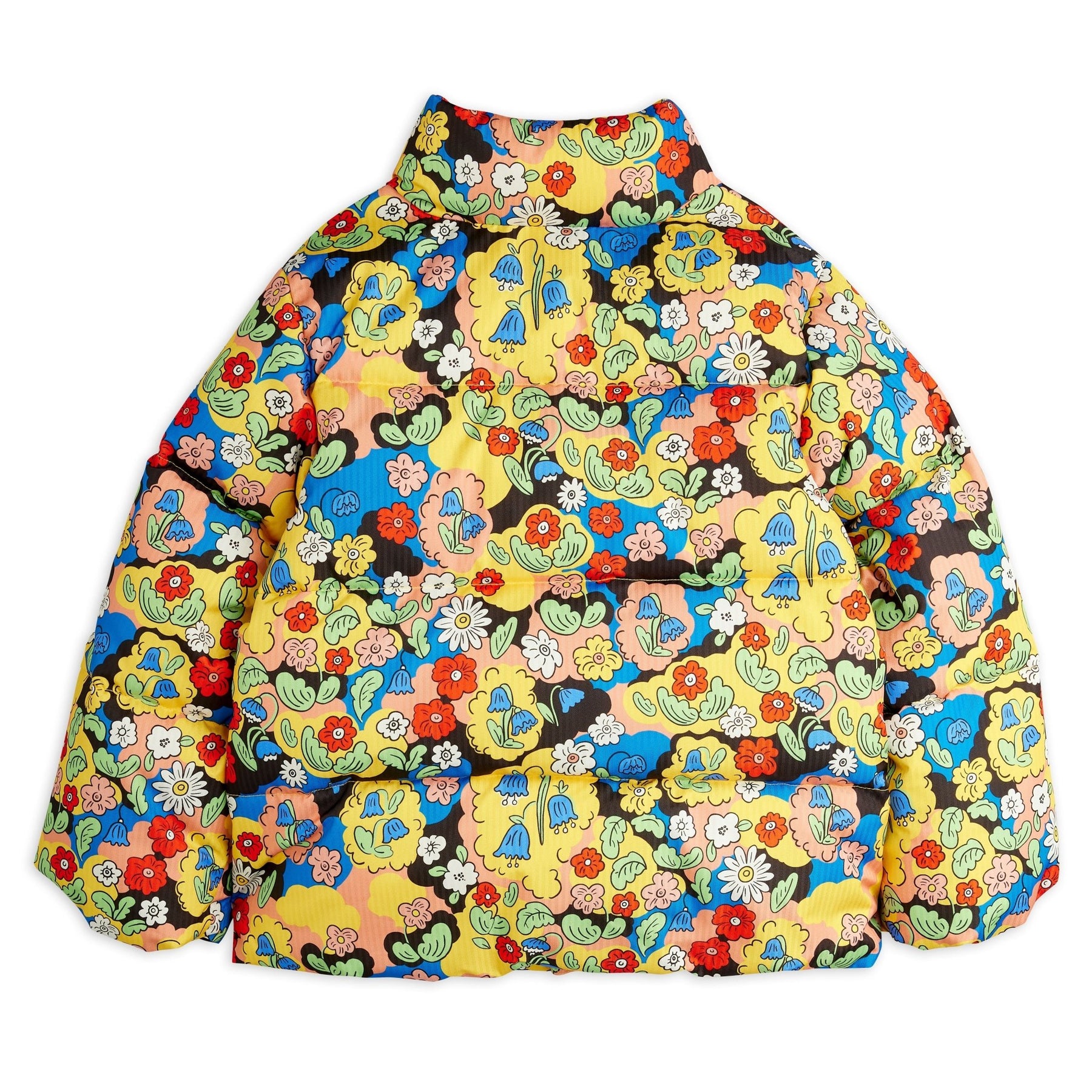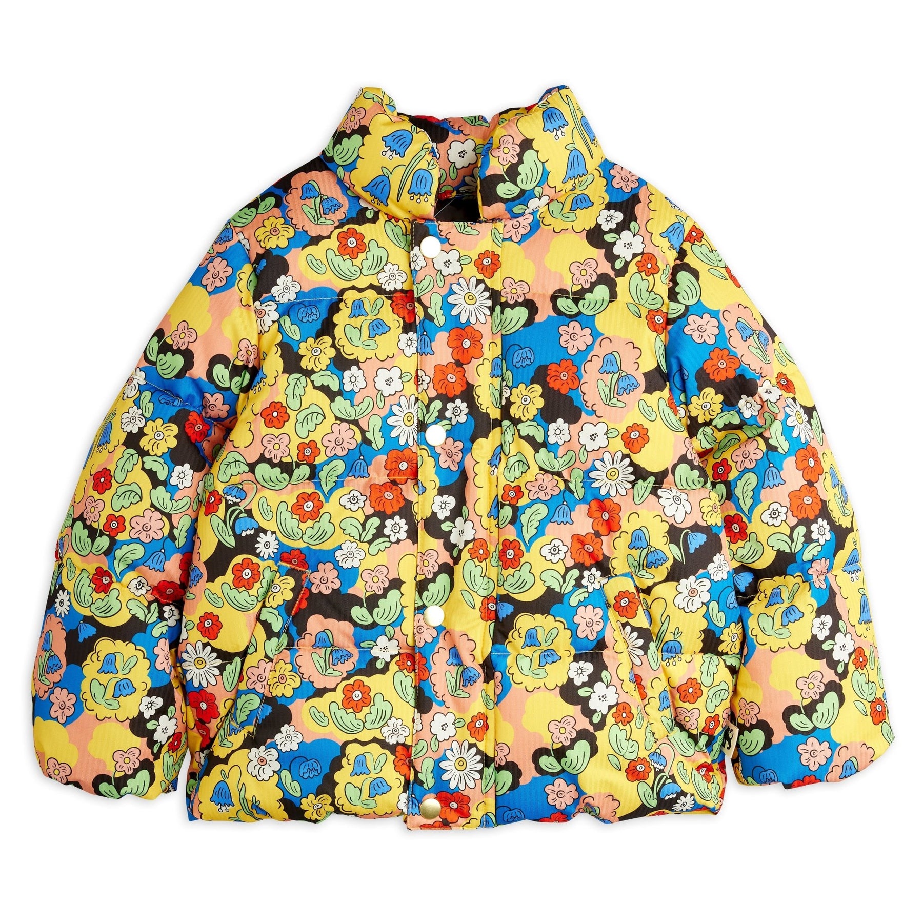 Leuke puffer met bloemen in vrolijke kleuren van Mini Rodini. Komt met een rits en drukknopen.