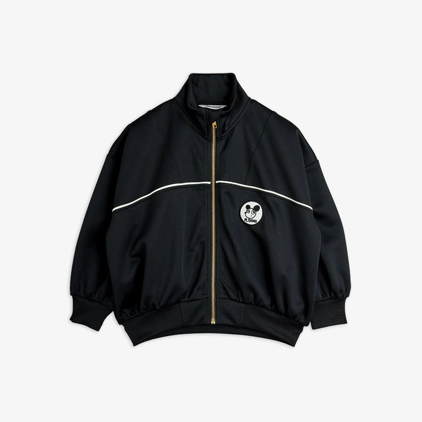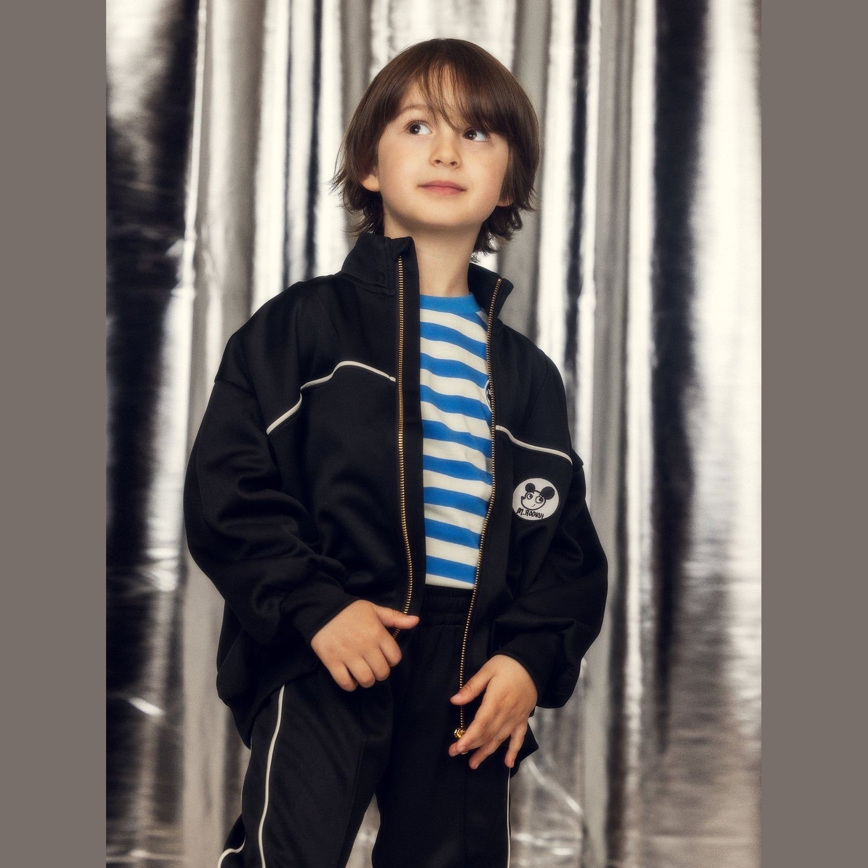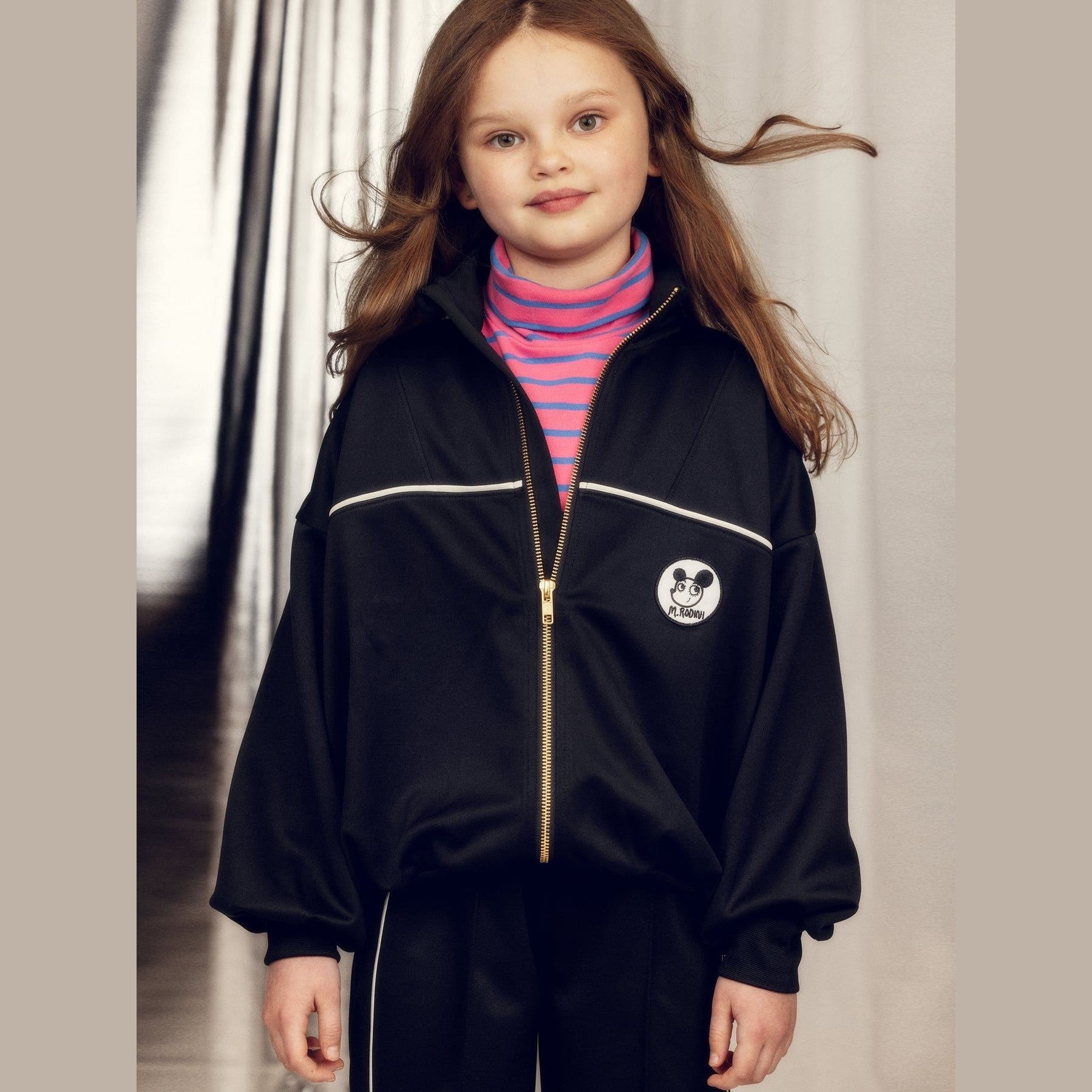 Duurzaamheid staat bij Mini Rodini hoog in het vaandel. Dit tracksuit jacket is vervaardigd uit gerecyclede PET-flessen en ander post-consumer plastic, wat bijdraagt aan een milieuvriendelijkere garderobe voor kinderen. Het comfortabele materiaal en de doordachte afwerking maken dit jack tot een praktisch, duurzaam en stijlvol kledingstuk, dat perfect te combineren is met andere Mini Rodini items uit de Ritzratz-collectie voor een complete, speelse look.