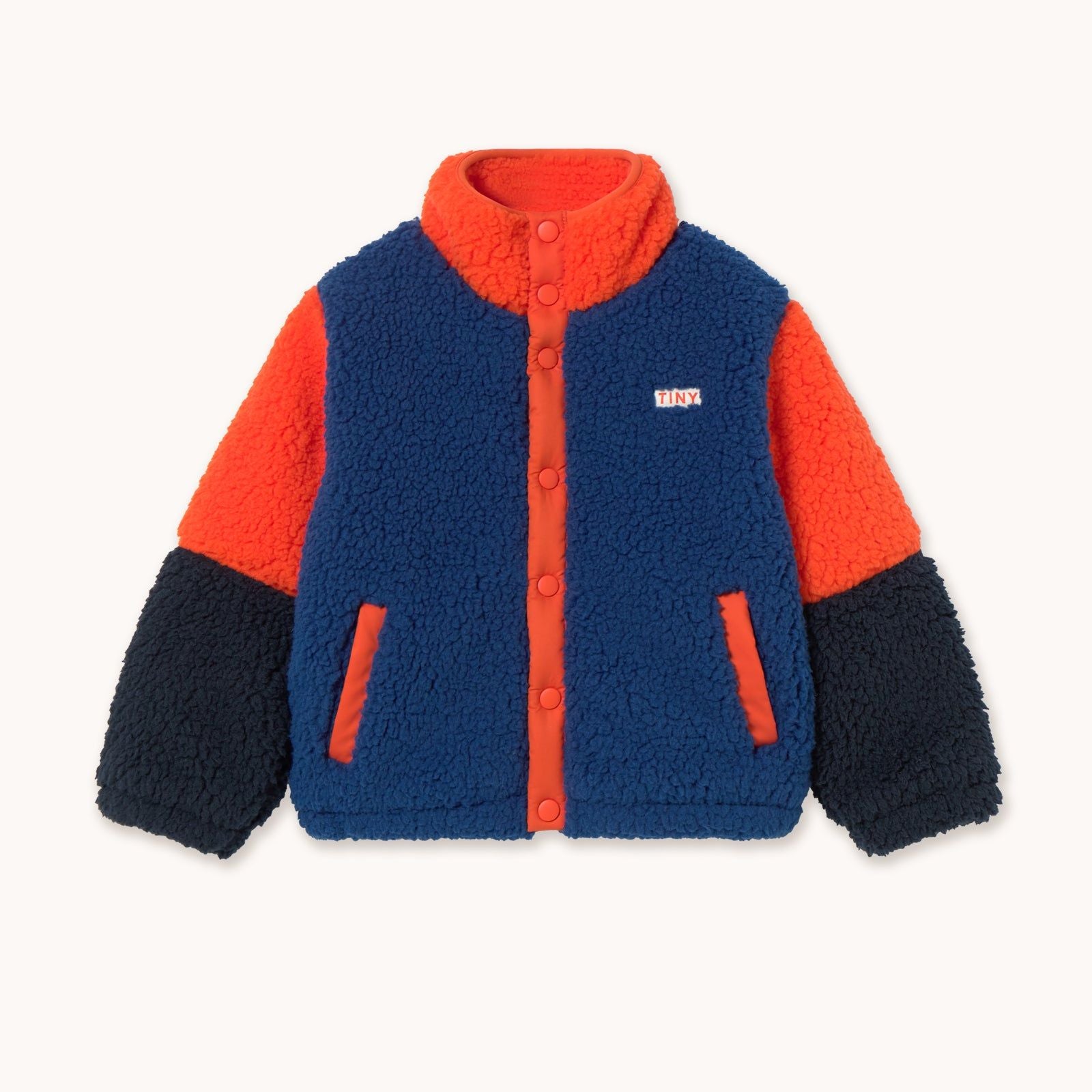Deze jas van Tiny Cottons houdt je zeker en vast warm! Het color block patroon in donkerblauw en rood geeft de jas een retro look. Gemaakt in China.